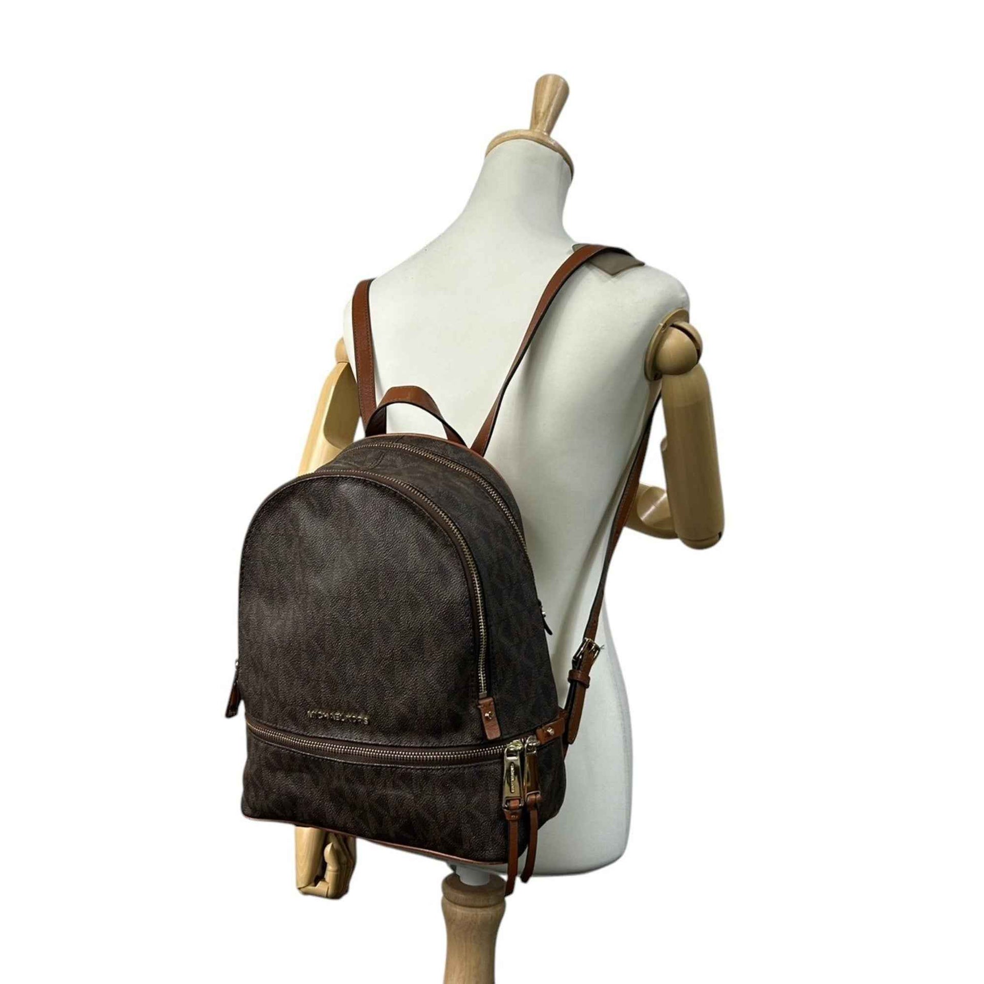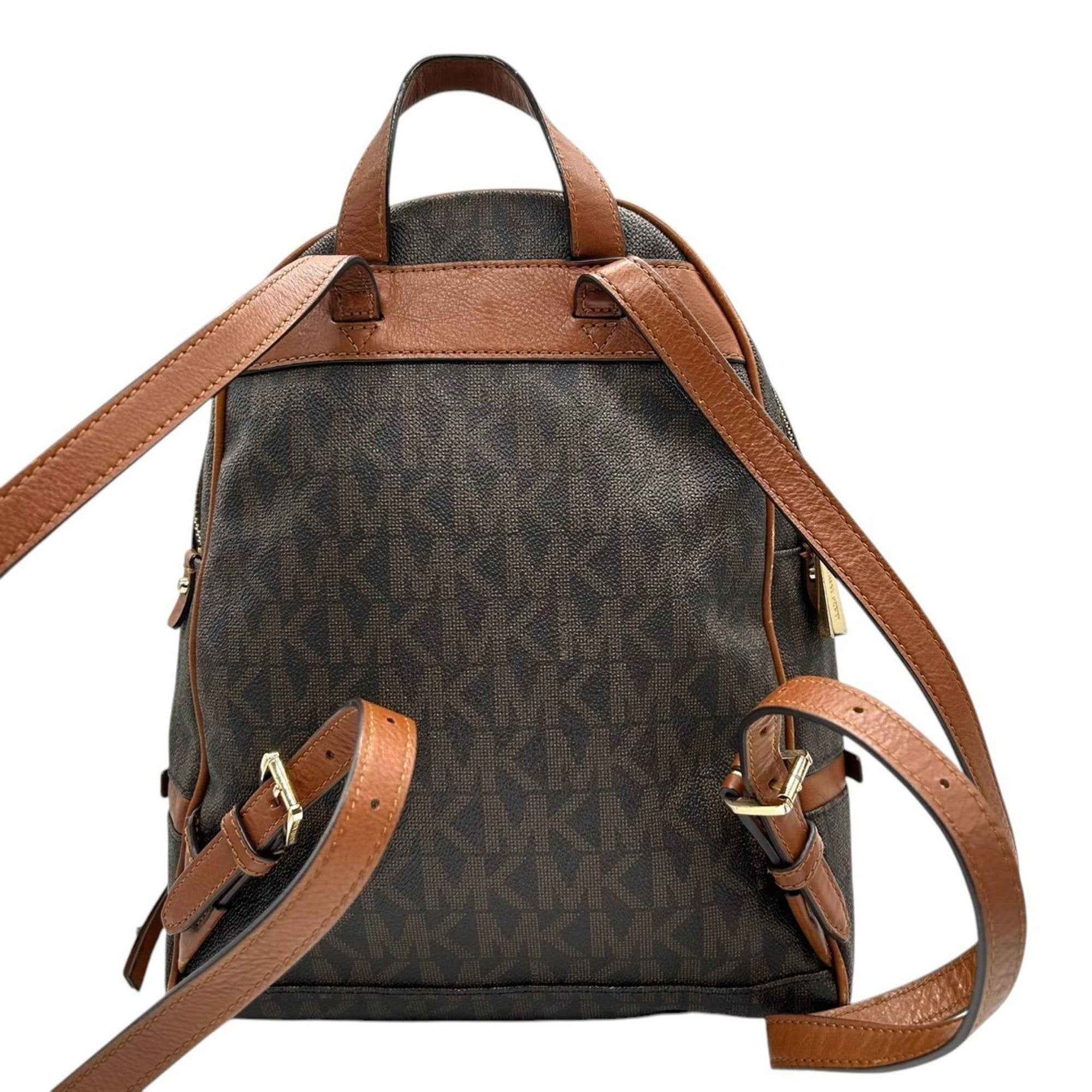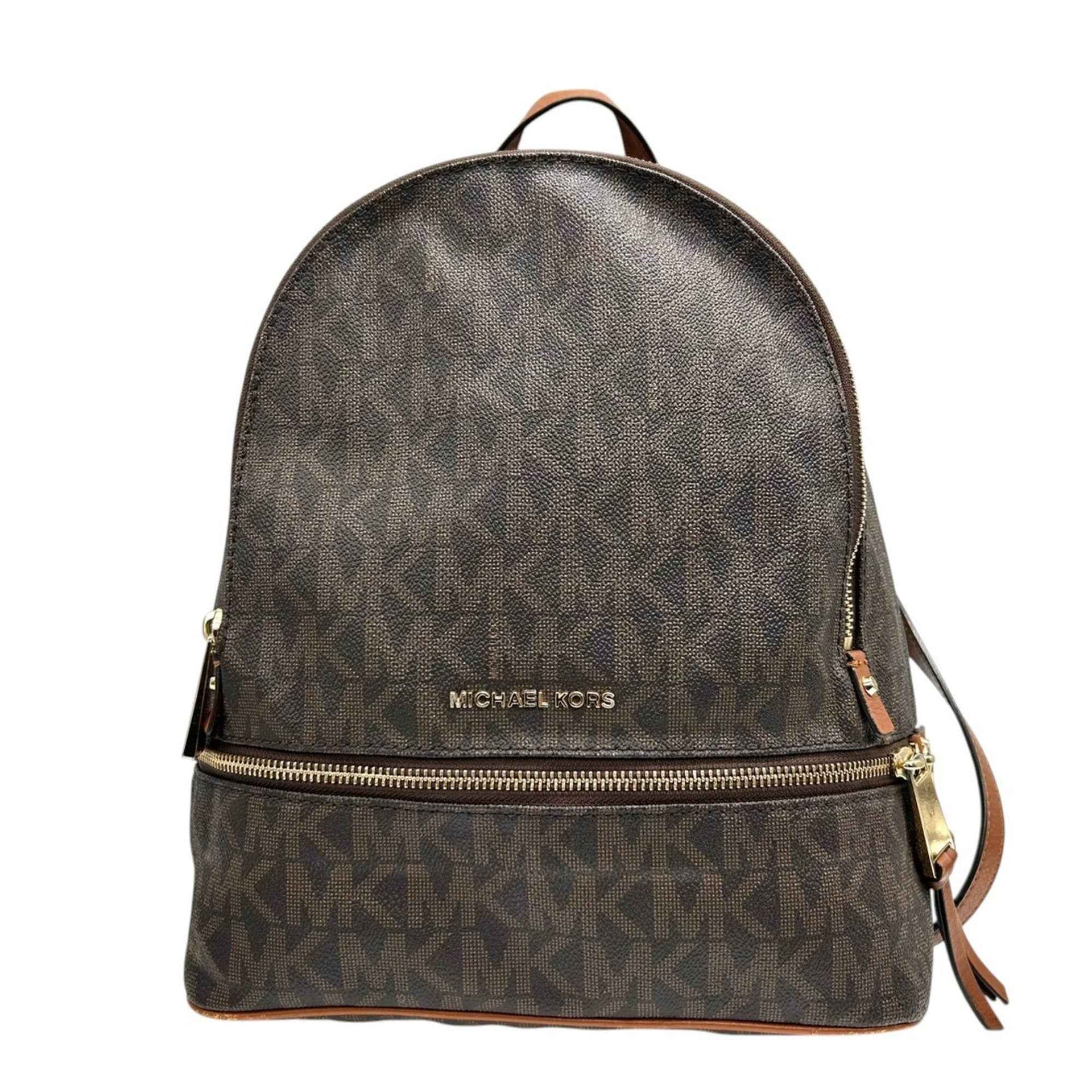 Michael Kors Rear Zip Medium Backpack in Signature MK Pattern, Brown Leather, Women\'s