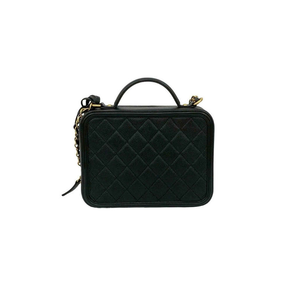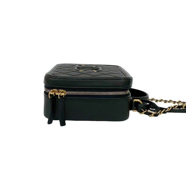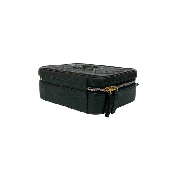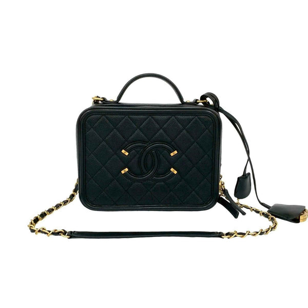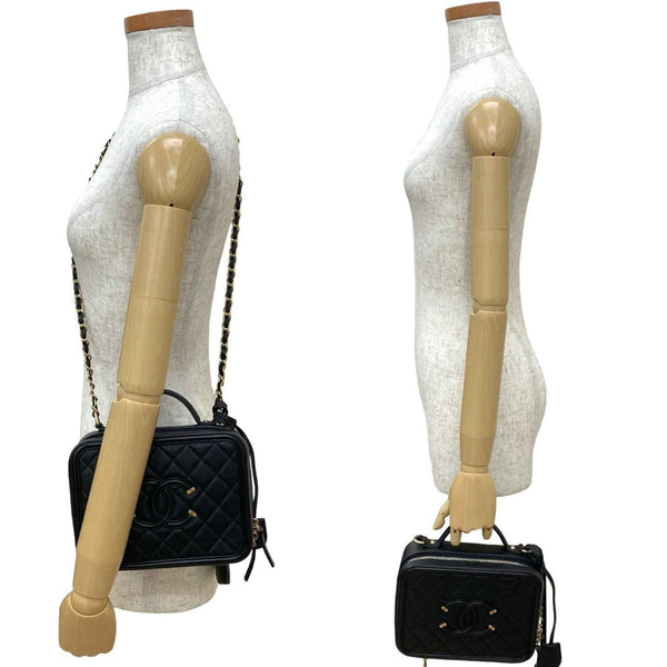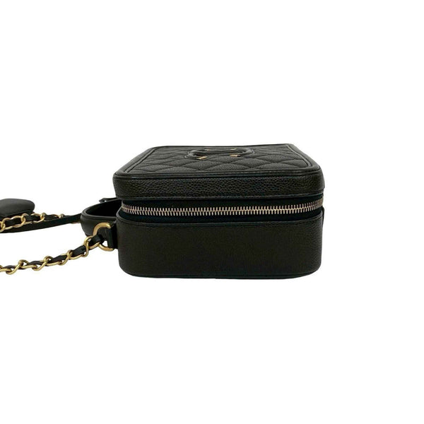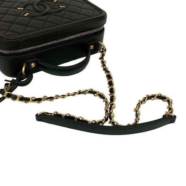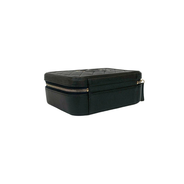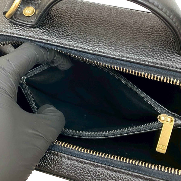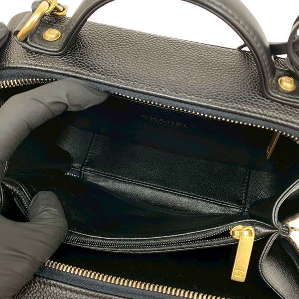 CHANEL CC Figurine Coco Mark Caviar Skin 2-Way Shoulder Bag/Handbag Black 35671