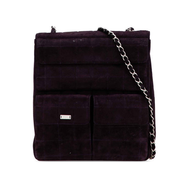 Chanel Chocobar Chain Shoulder Bag in Purple and Silver Suede for Women