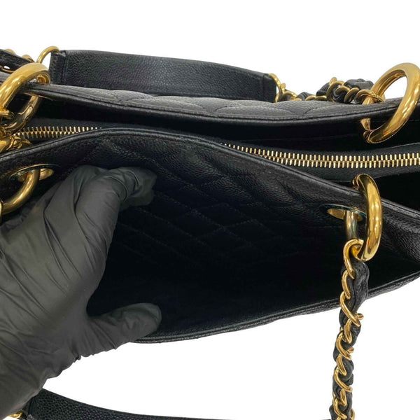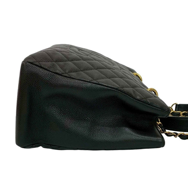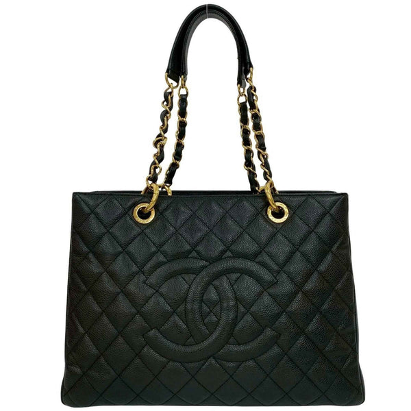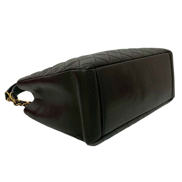 CHANEL Matelasse Coco Mark Caviar Leather Chain Tote Bag, Black, 20910