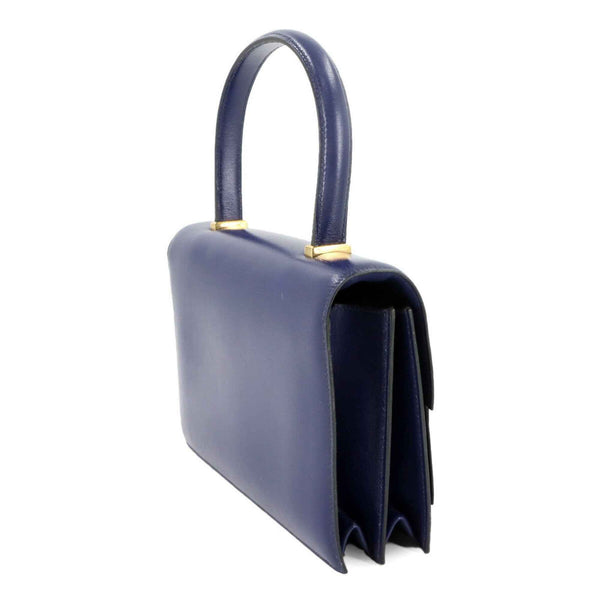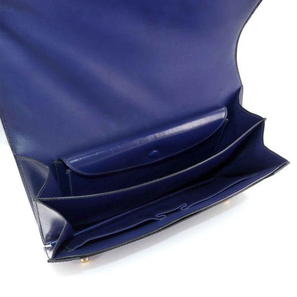 Hermes Hermès Piano Handbag, Box Calf Leather, Blue, XXL Stamp, Gold Hardware, Made in 1982