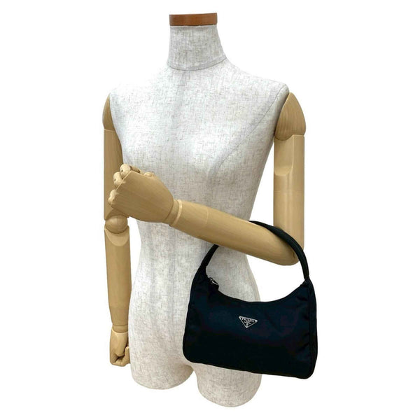 PRADA Prada Triangle Logo Plate Hardware Tessuto Nylon Mini Handbag Pouch One-Shoulder Bag Black 62701