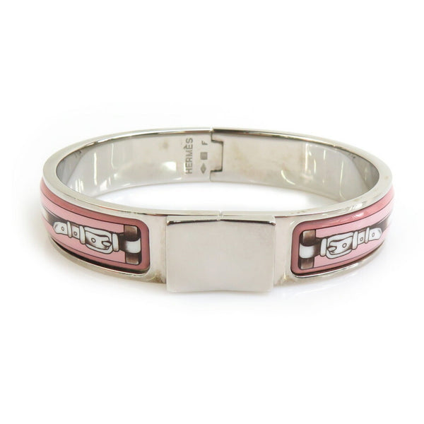 Hermes Hermès Click-Clack Metal Enamel Bangle Bracelet in Silver, Pink, and White for Women (e60864a)
