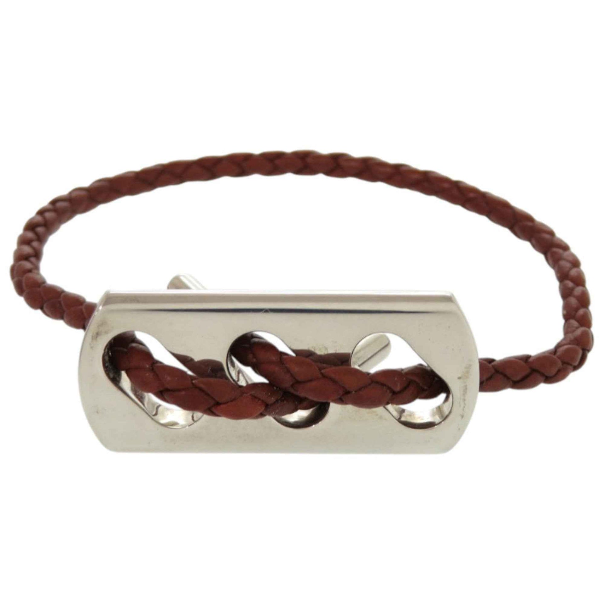 Hermes Leather Bracelet, 925 Sterling Silver, Silver Hardware, Brown, 1126 HERMES