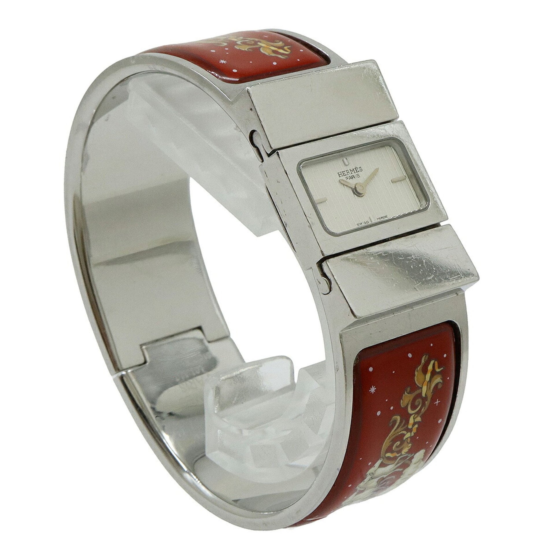 HERMES Locé Silver Dial Bangle GP Enamel Women\'s Quartz Watch LO1.210