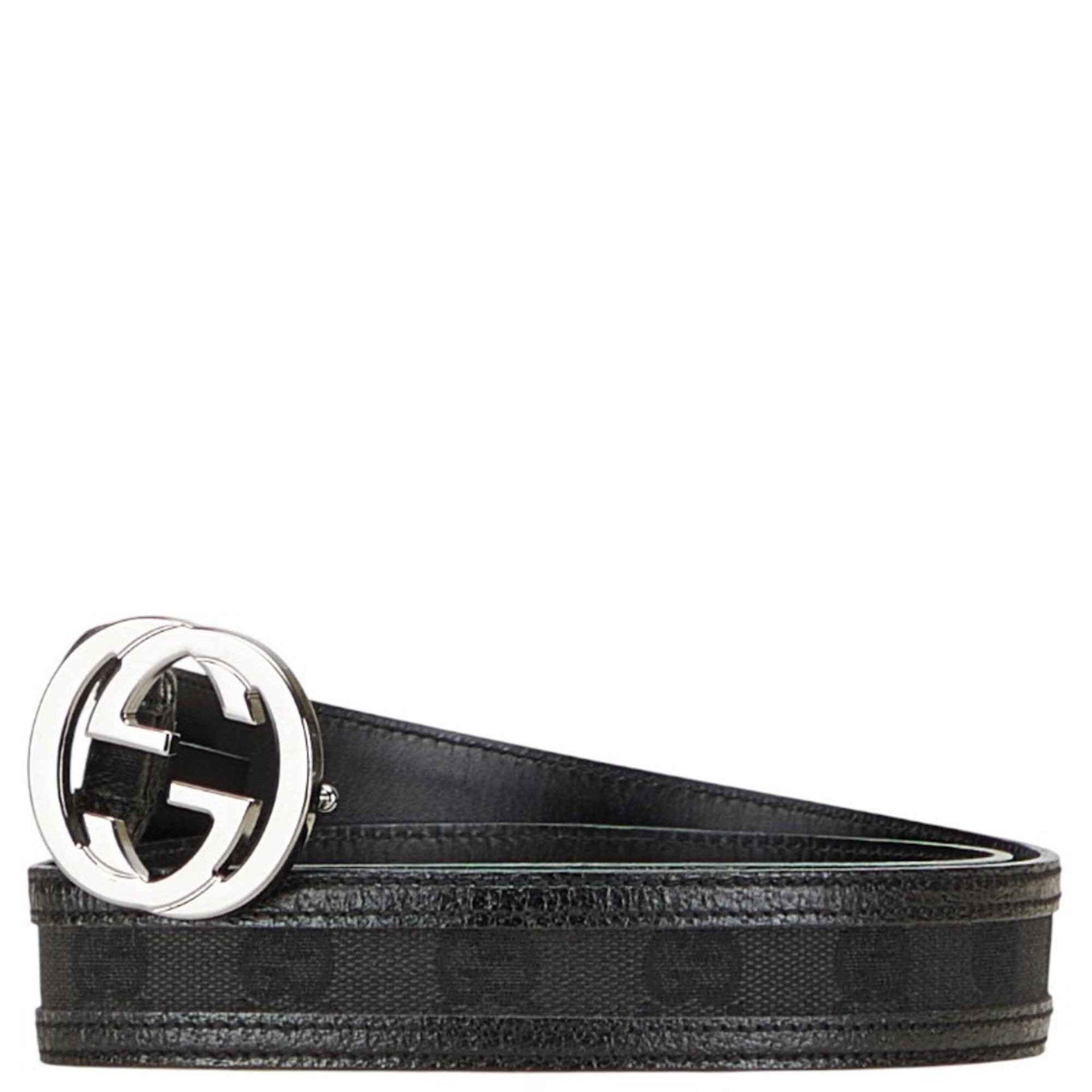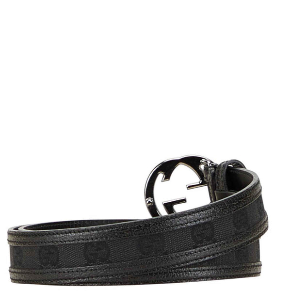 Gucci GG Canvas Interlocking G Belt 80.32 114874 Black Silver Leather Women\'s GUCCI