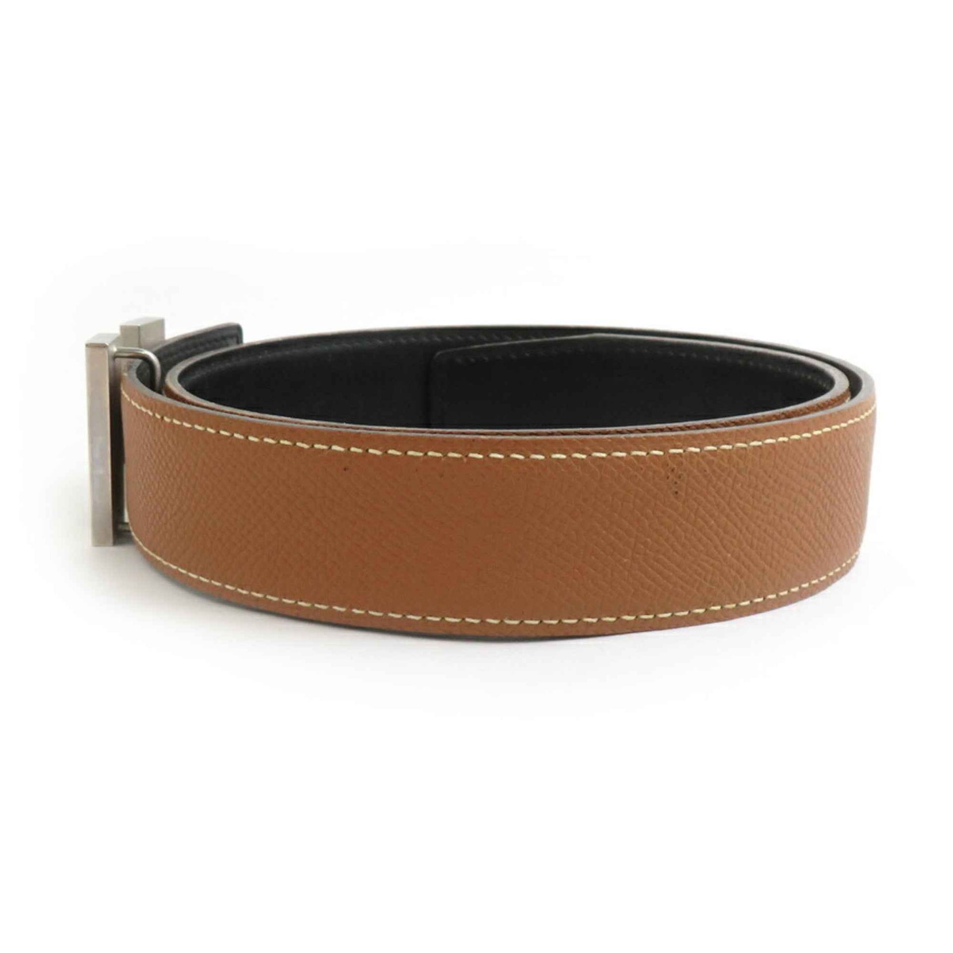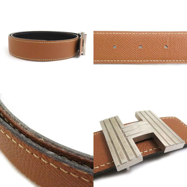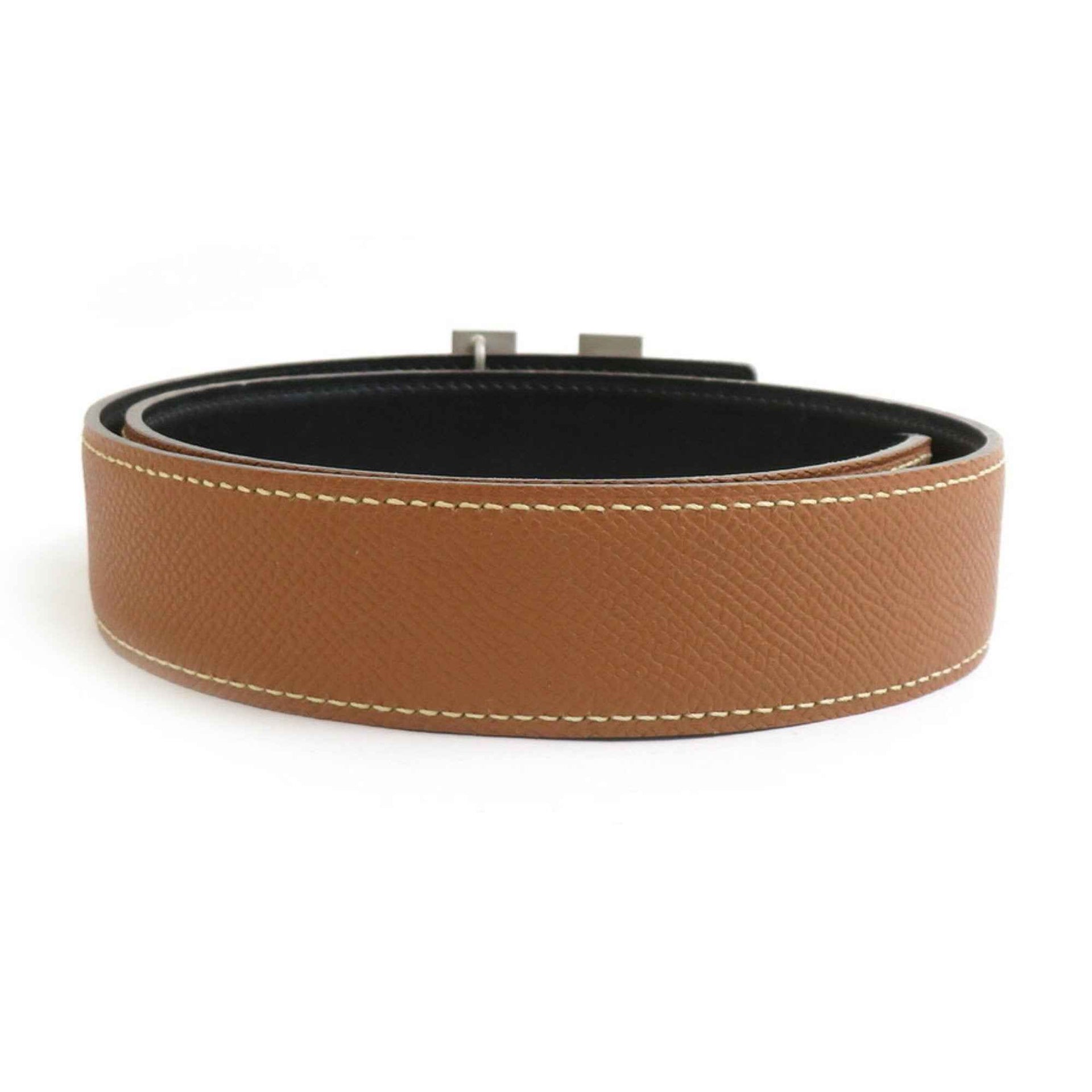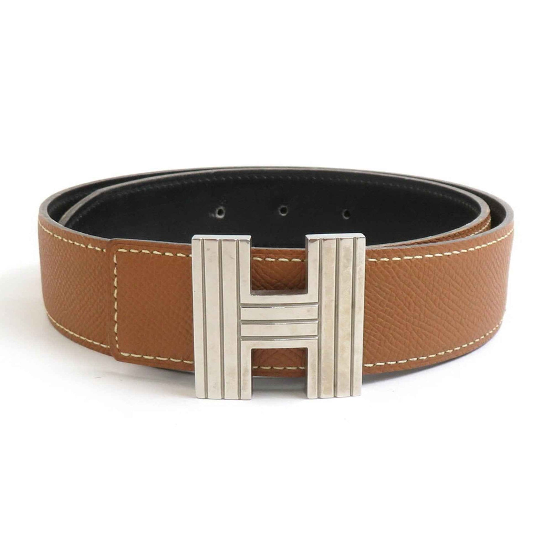 Hermes Hermès H Belt, Reversible Leather and Metal, Brown, Black, Silver, Women\'s, w1247g