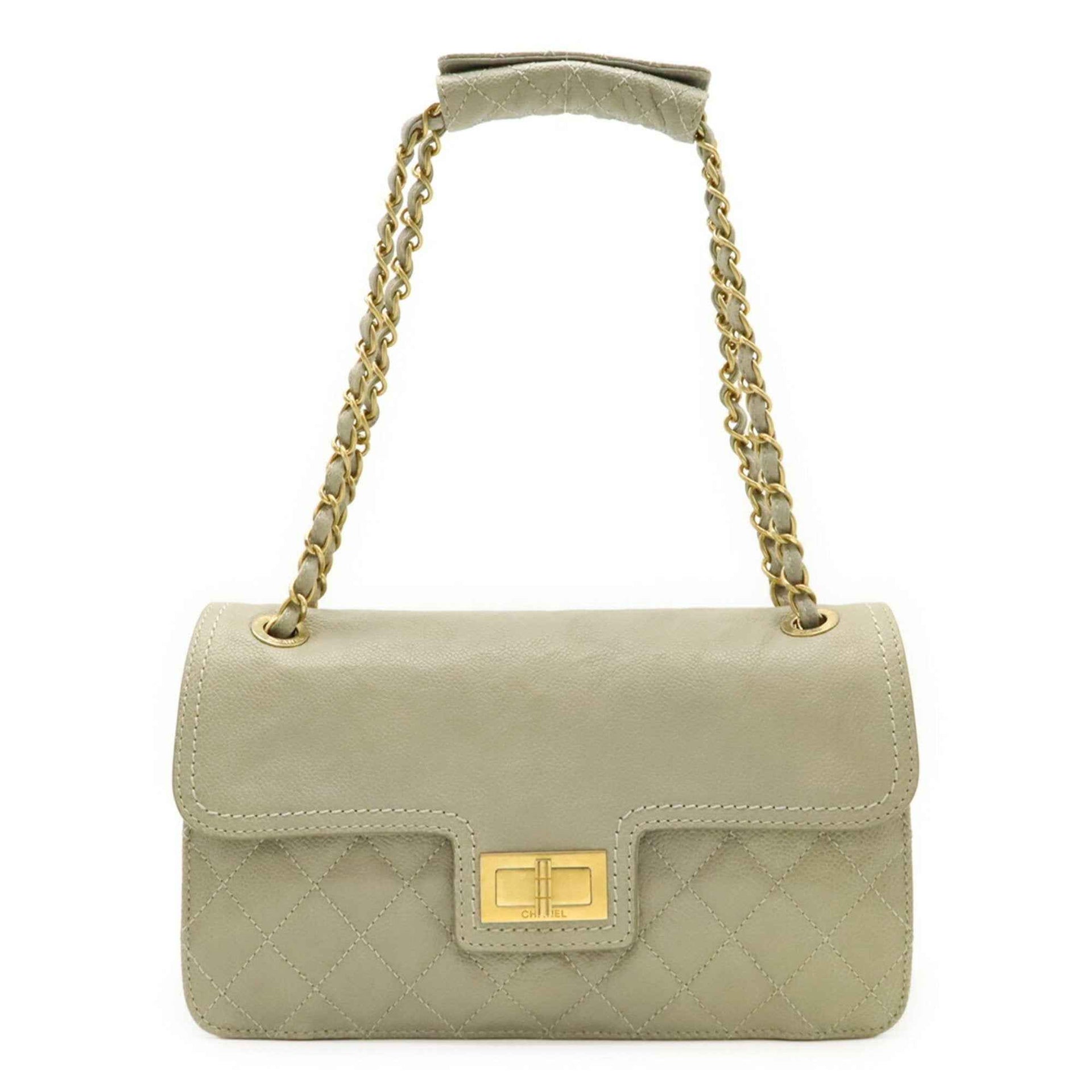 CHANEL 2.55 Matelasse Chain Shoulder Bag in Soft Caviar Leather, Light Greige