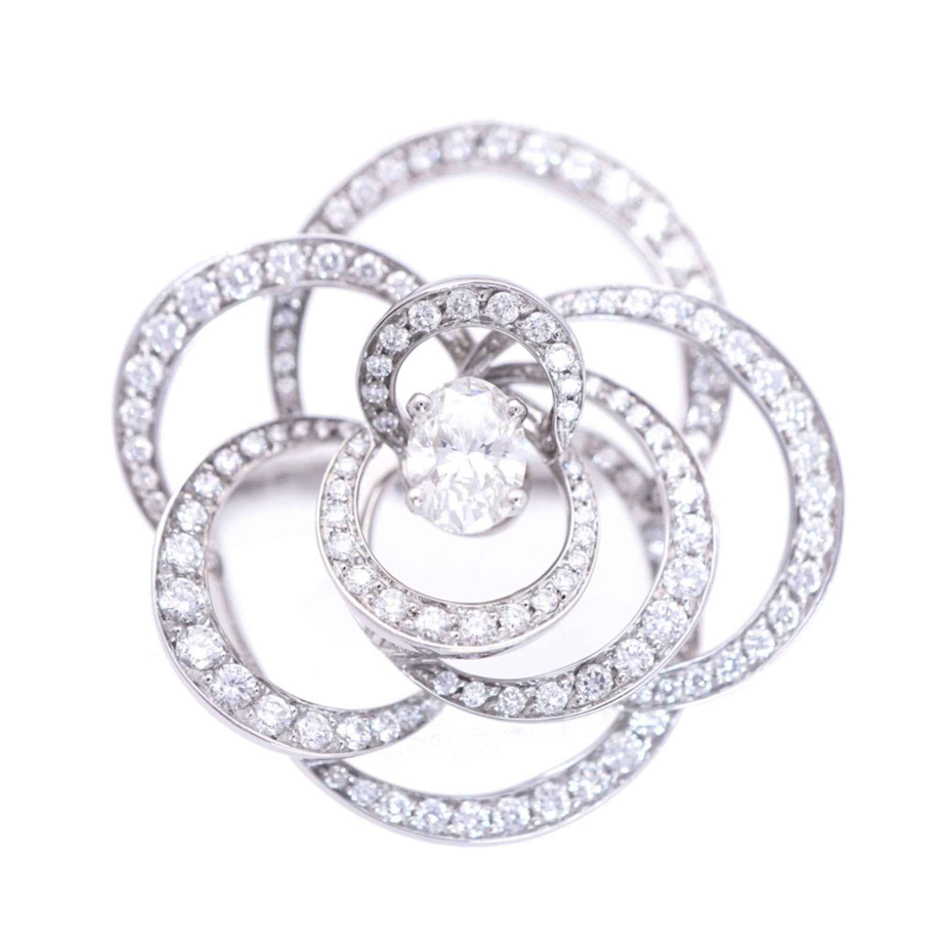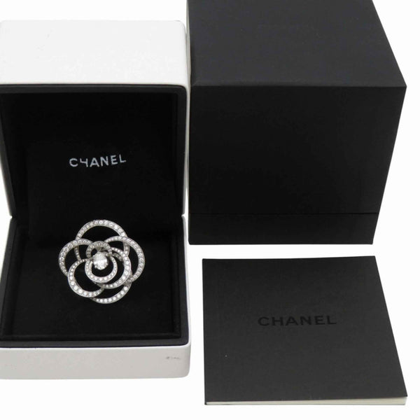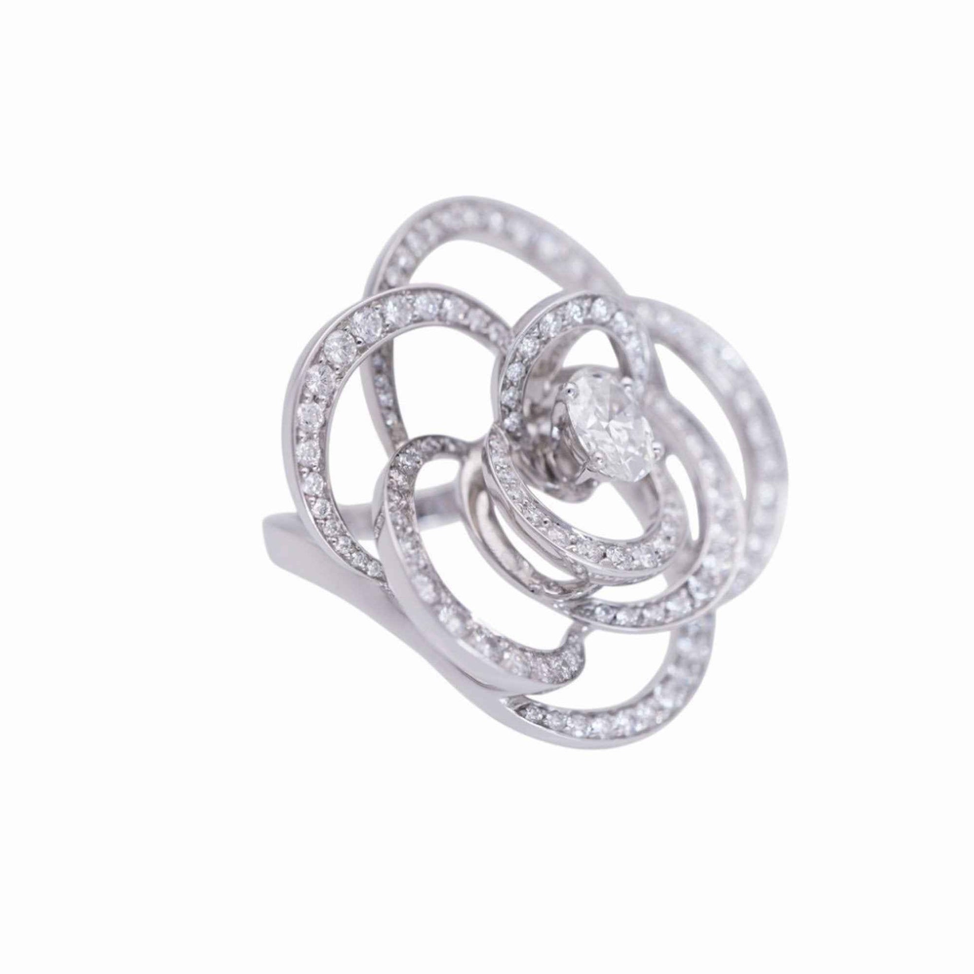 CHANEL Camellia Oval Ring with 0.8ct Diamonds / 140ct and 1.81ct Diamonds, #51, 18KWG 750 White Gold, 0234, Women\'s