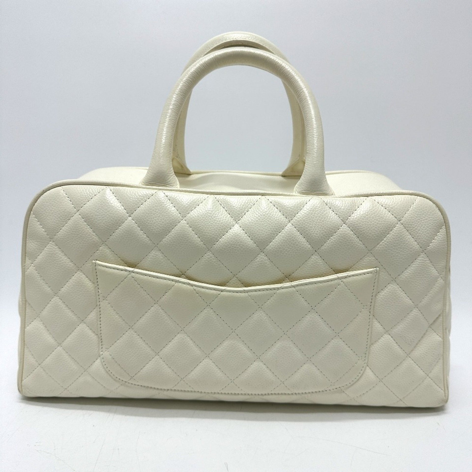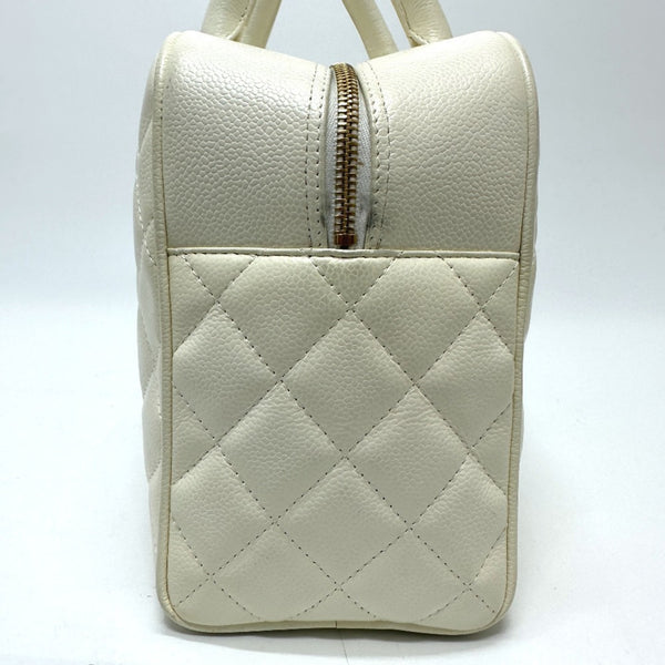 CHANEL CC Coco Mark Boston Bag, Quilted Matelasse Handbag, Caviar Skin, Women\'s, White