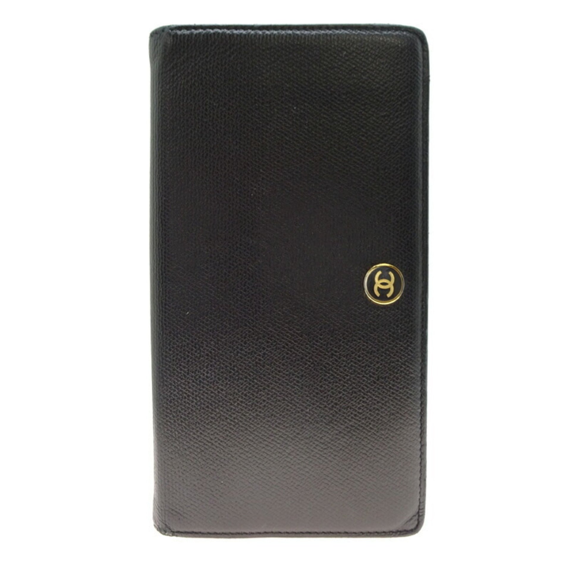 Chanel Coco Button Long Wallet, Women\'s, A20904, Leather, Black