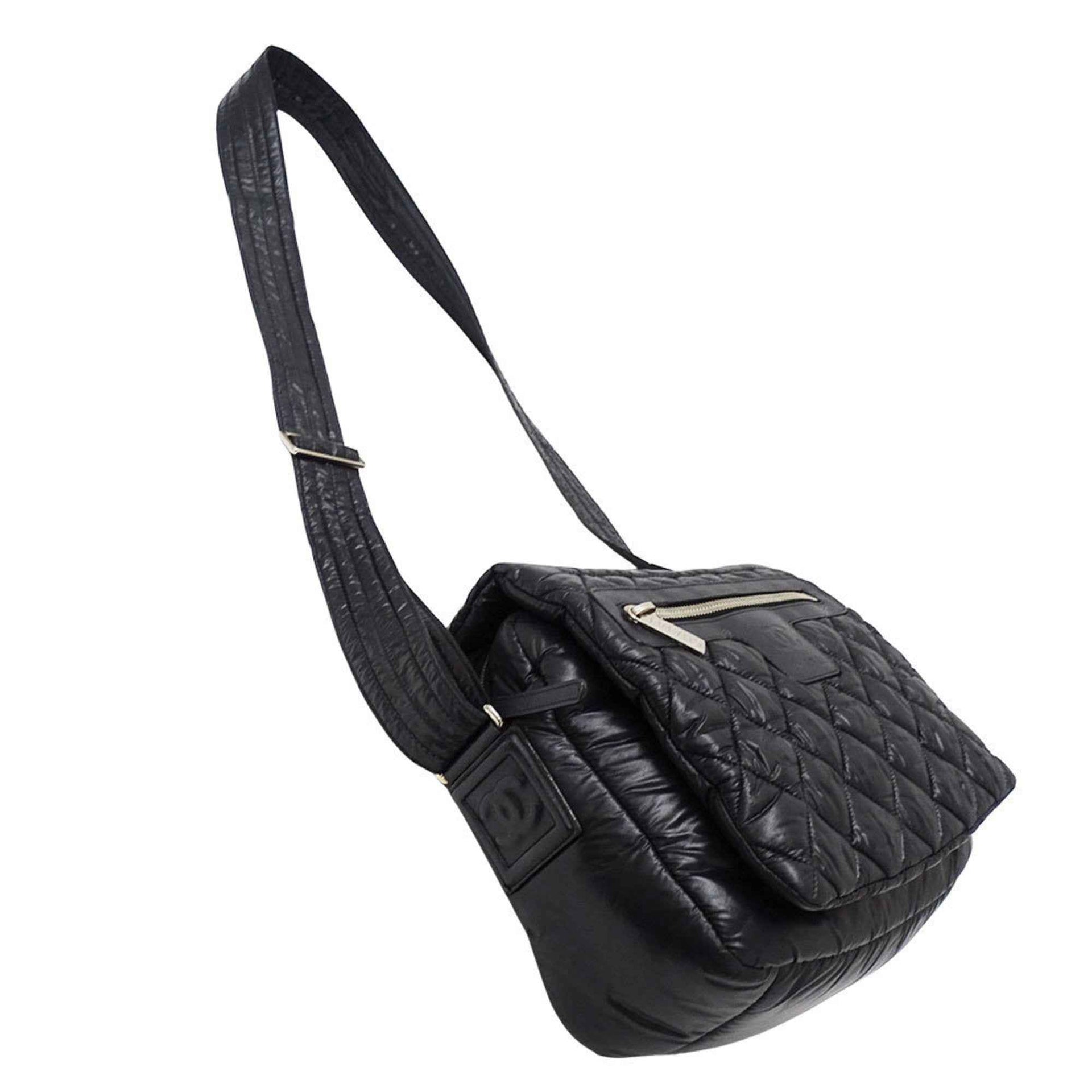 Chanel Coco Cocoon Women\'s Shoulder Bag in Black Nylon with Silver Hardware, Quilted Design