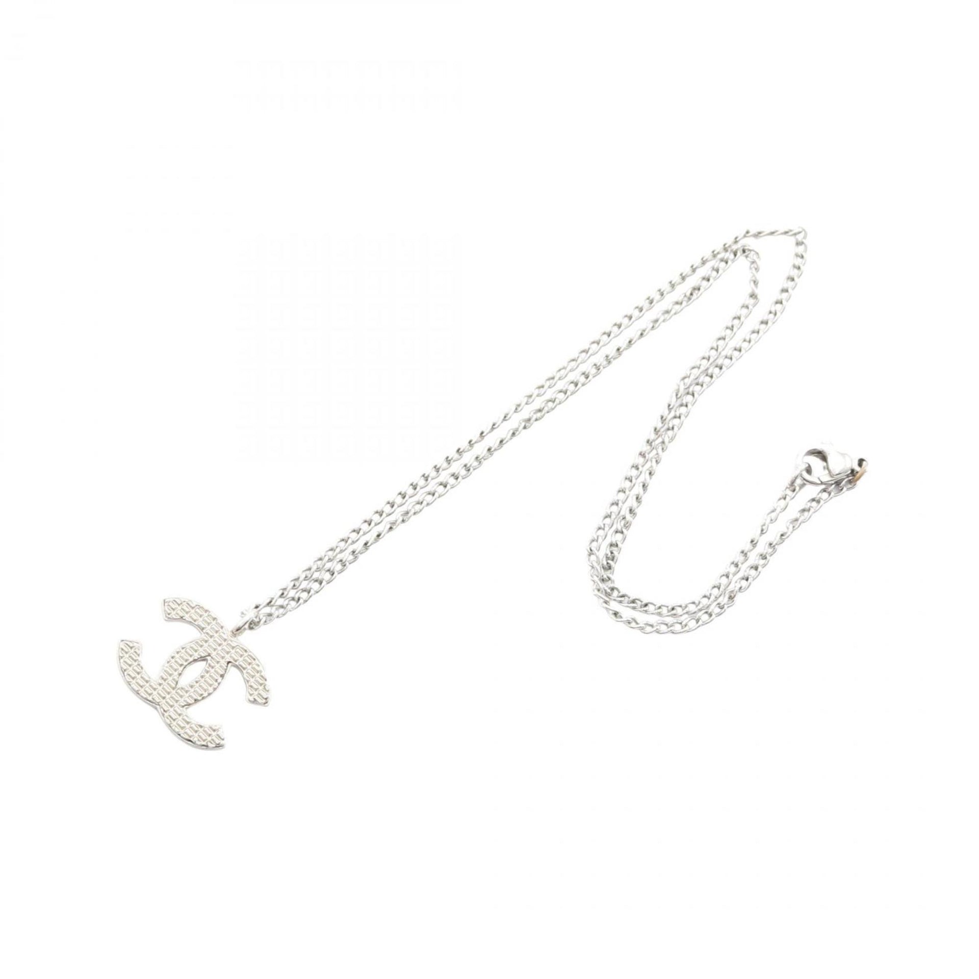 CHANEL Coco Mark Necklace, Stainless Steel, Women\'s, Silver