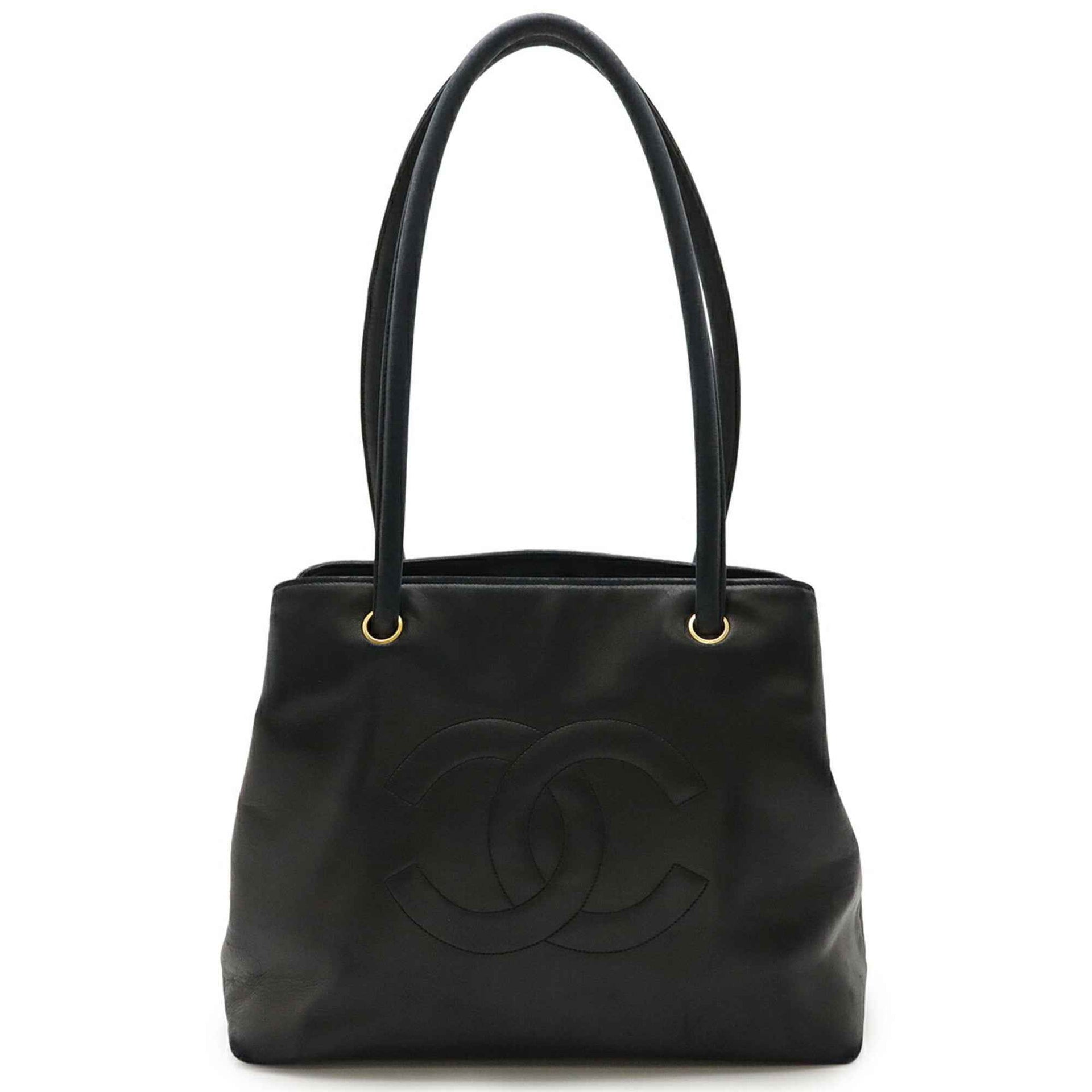 CHANEL Coco Mark Tote Bag Shoulder Lambskin Leather Black