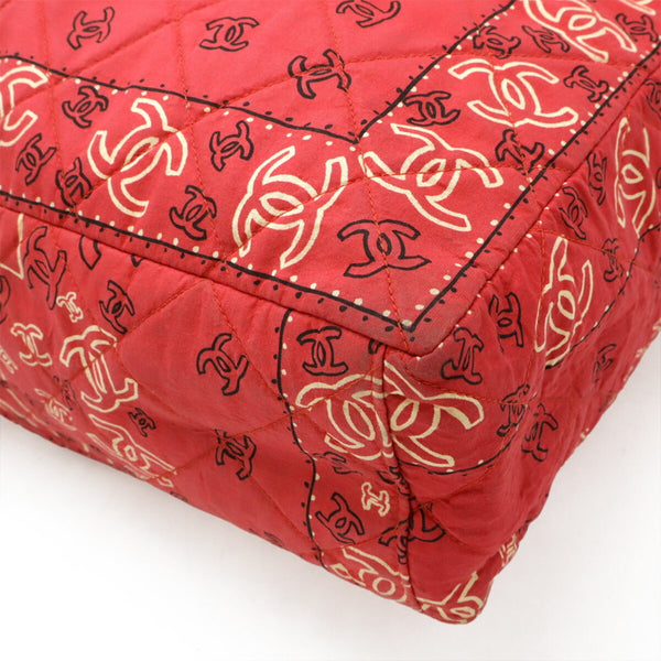 CHANEL Coco Mark Tote Bag with Chain Shoulder Bag, Cotton, Red, White
