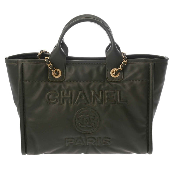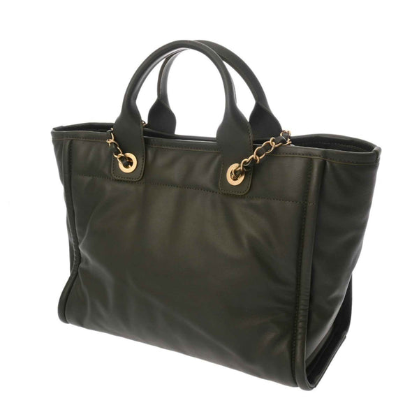 CHANEL Deauville Tote Bag, Khaki, AS3257, Women\'s Lambskin Shoulder Like New