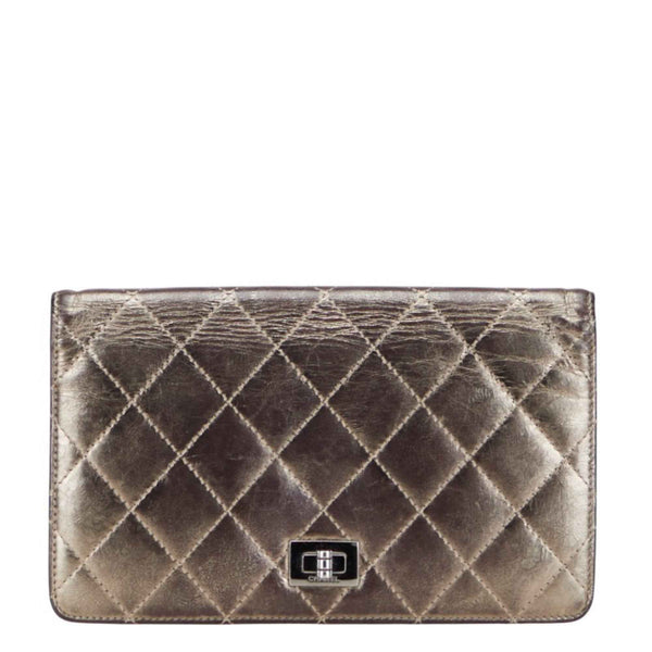 CHANEL Matelasse 2.55 Long Wallet in Gold Metallic Leather for Women
