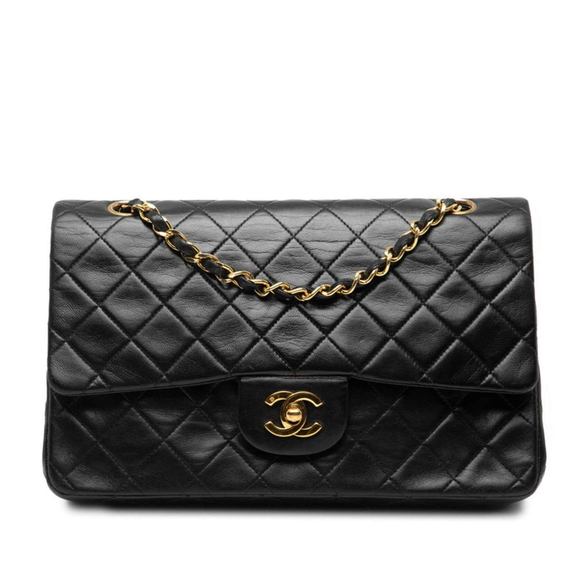 CHANEL Matelasse 25 Coco Mark Double Flap Chain Shoulder Bag in Black Lambskin for Women