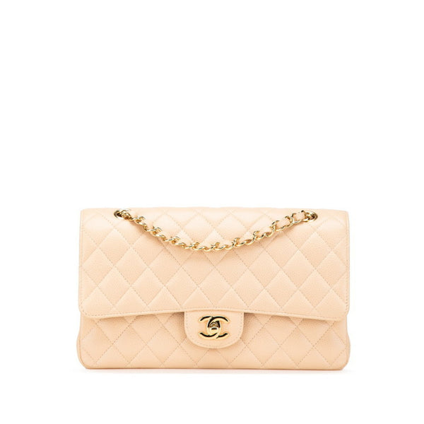 CHANEL Matelasse 25 Double Flap Chain Shoulder Bag in Beige with Gold Hardware and Caviar Leather, Women\'s