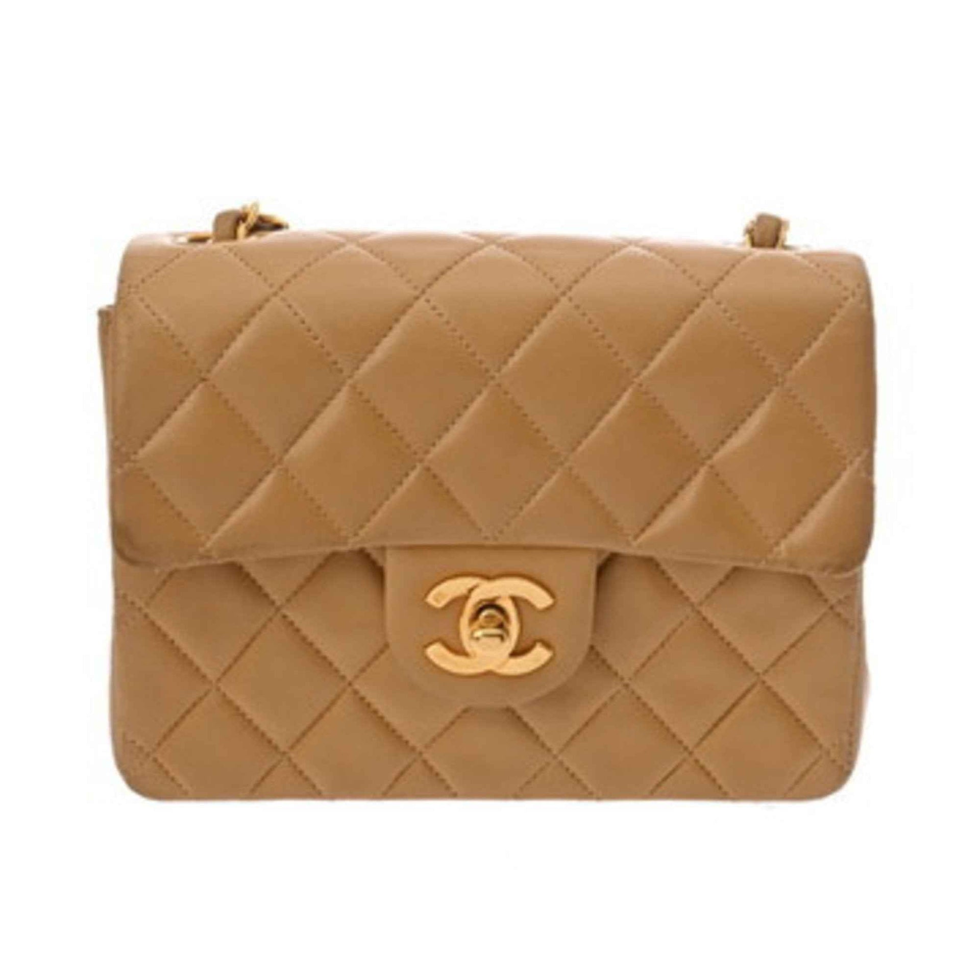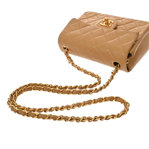 CHANEL Matelasse Chain Shoulder Bag, 18cm, Beige, AS0148, Unisex, Lambskin