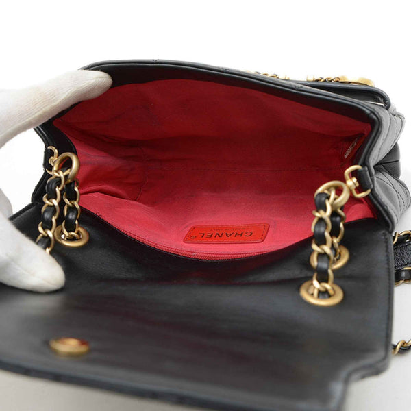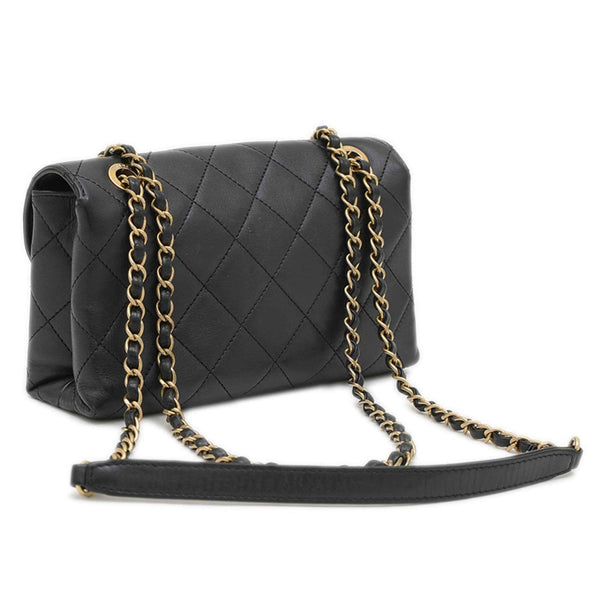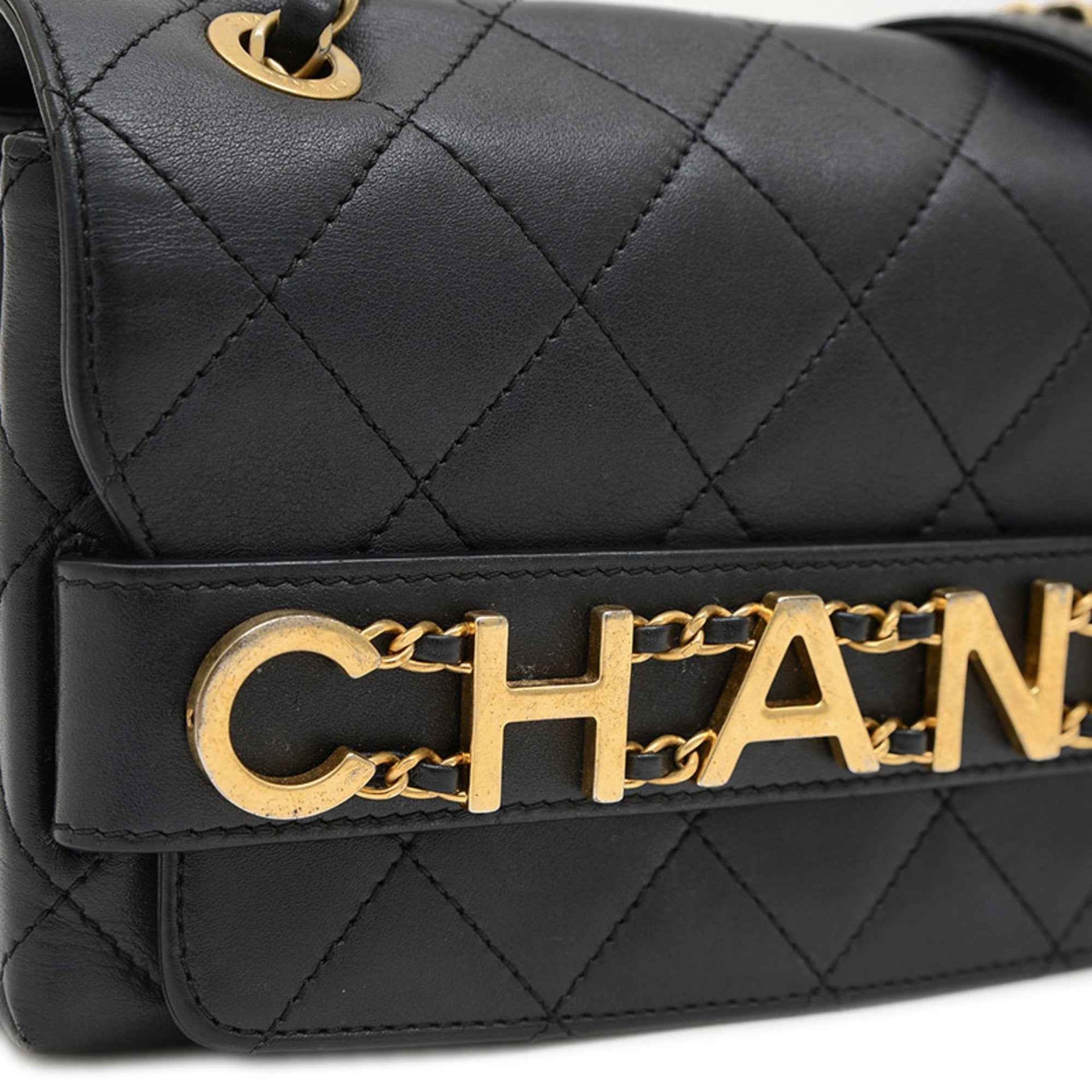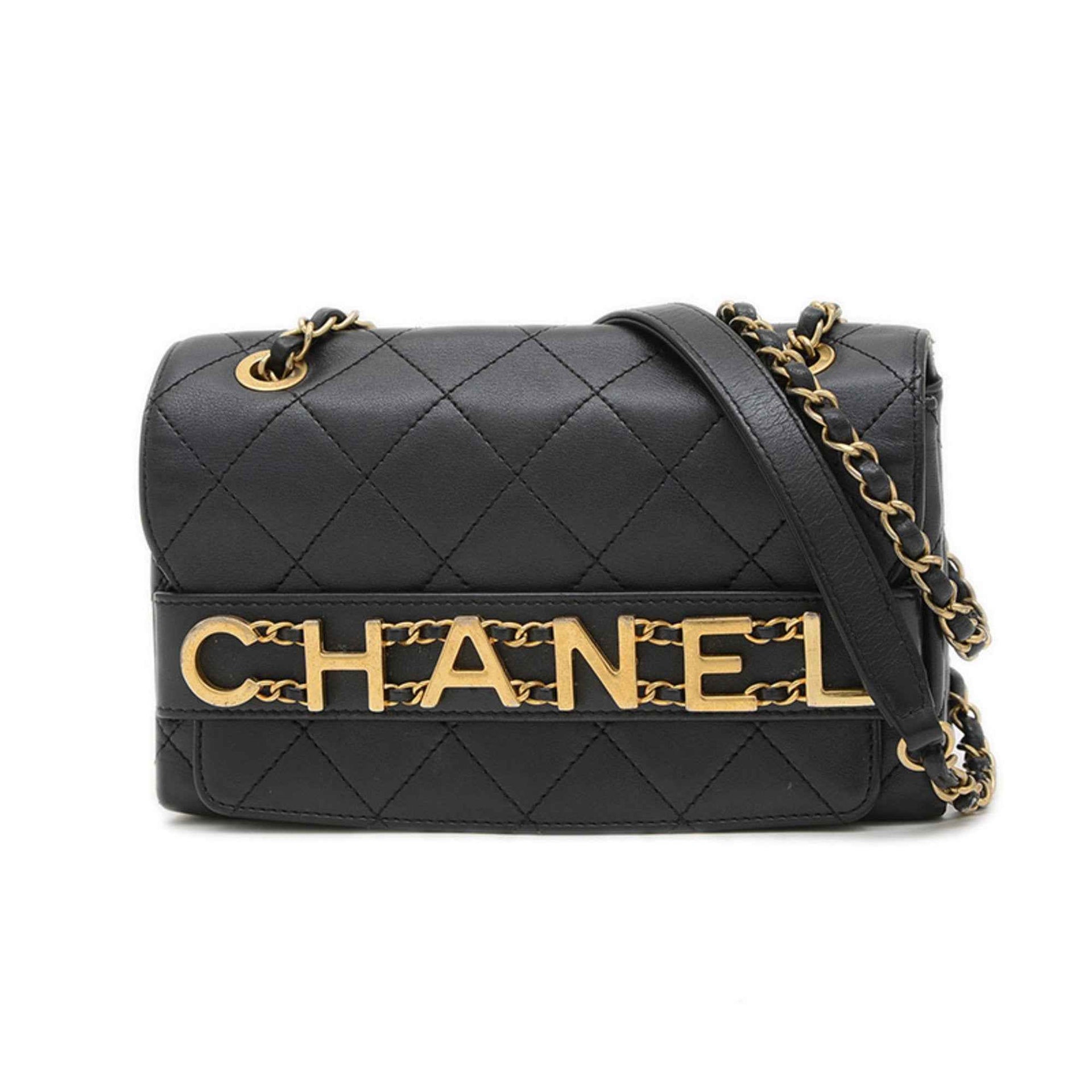 Chanel Matelasse Logo Chain Shoulder Bag in Black Lambskin with Gold Hardware AS4190