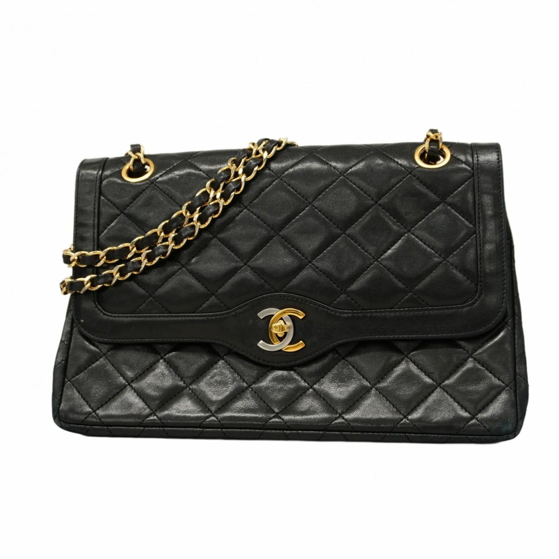 Chanel Matelasse Shoulder Bag, Paris Limited Edition, Double Flap, Chain, Lambskin, Black, Gold, Women\'s