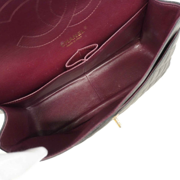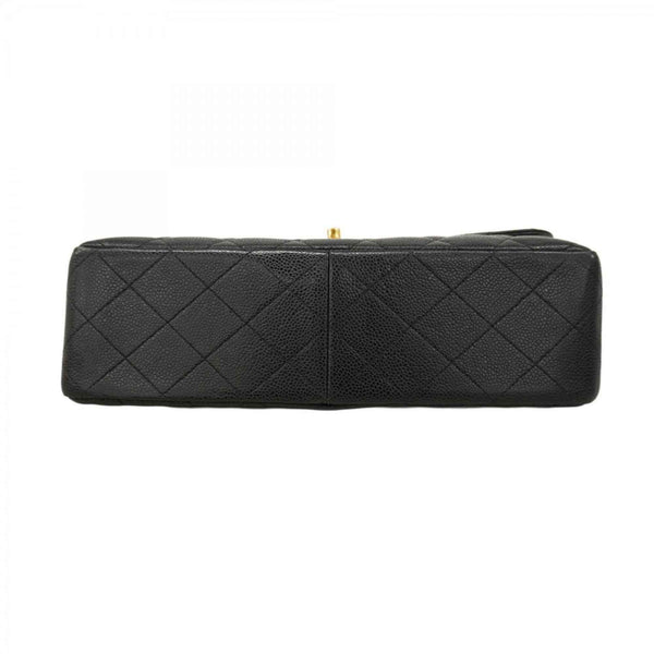 Chanel Matelasse Shoulder Bag with Double Flap and Chain, Caviar Skin, Black, Women\'s