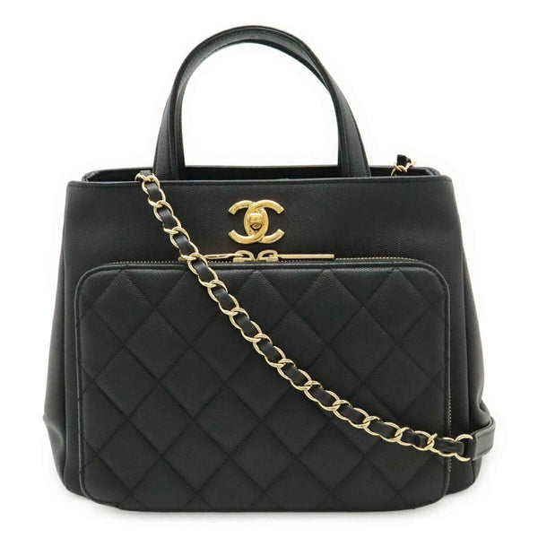 CHANEL Matelasse Small Handbag with Chain Shoulder Strap, Caviar Skin, Black, A93750