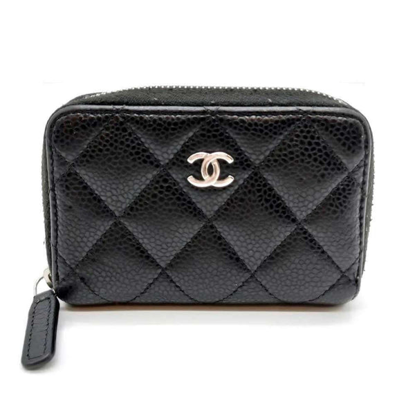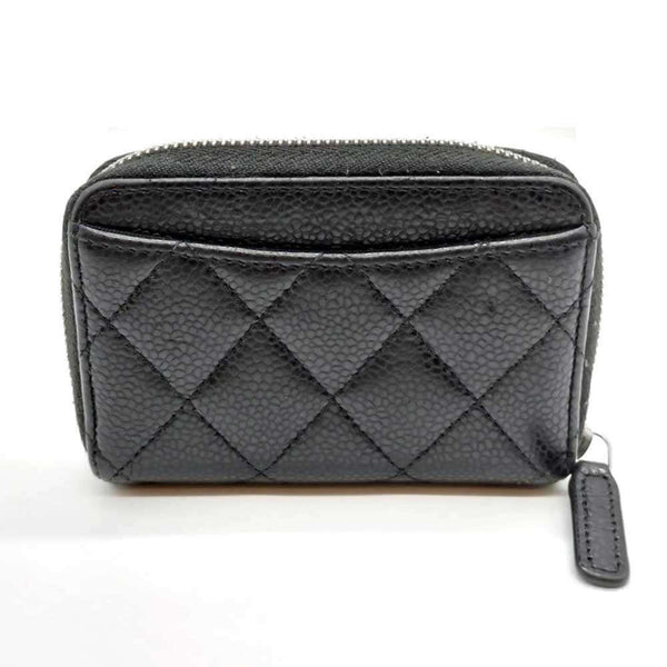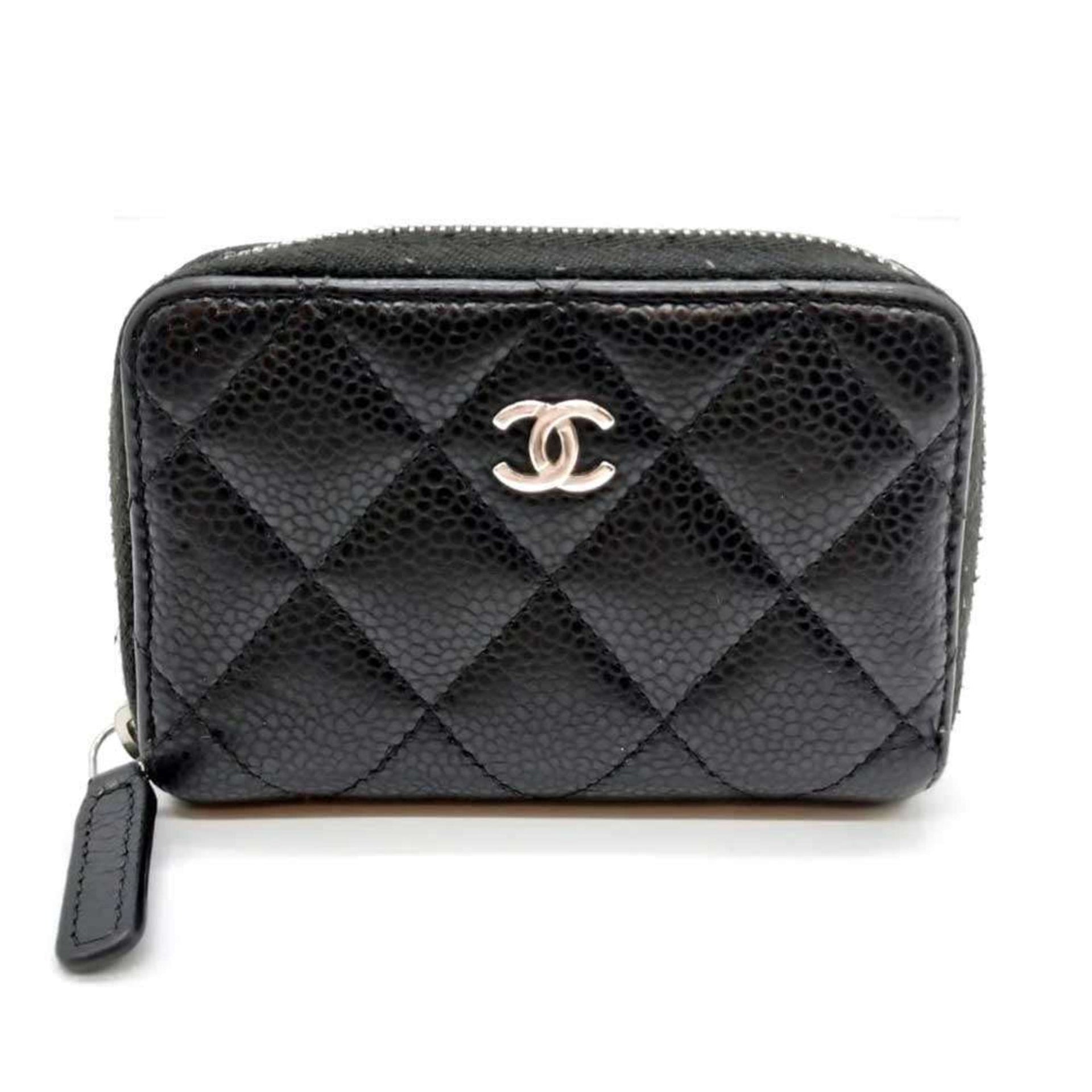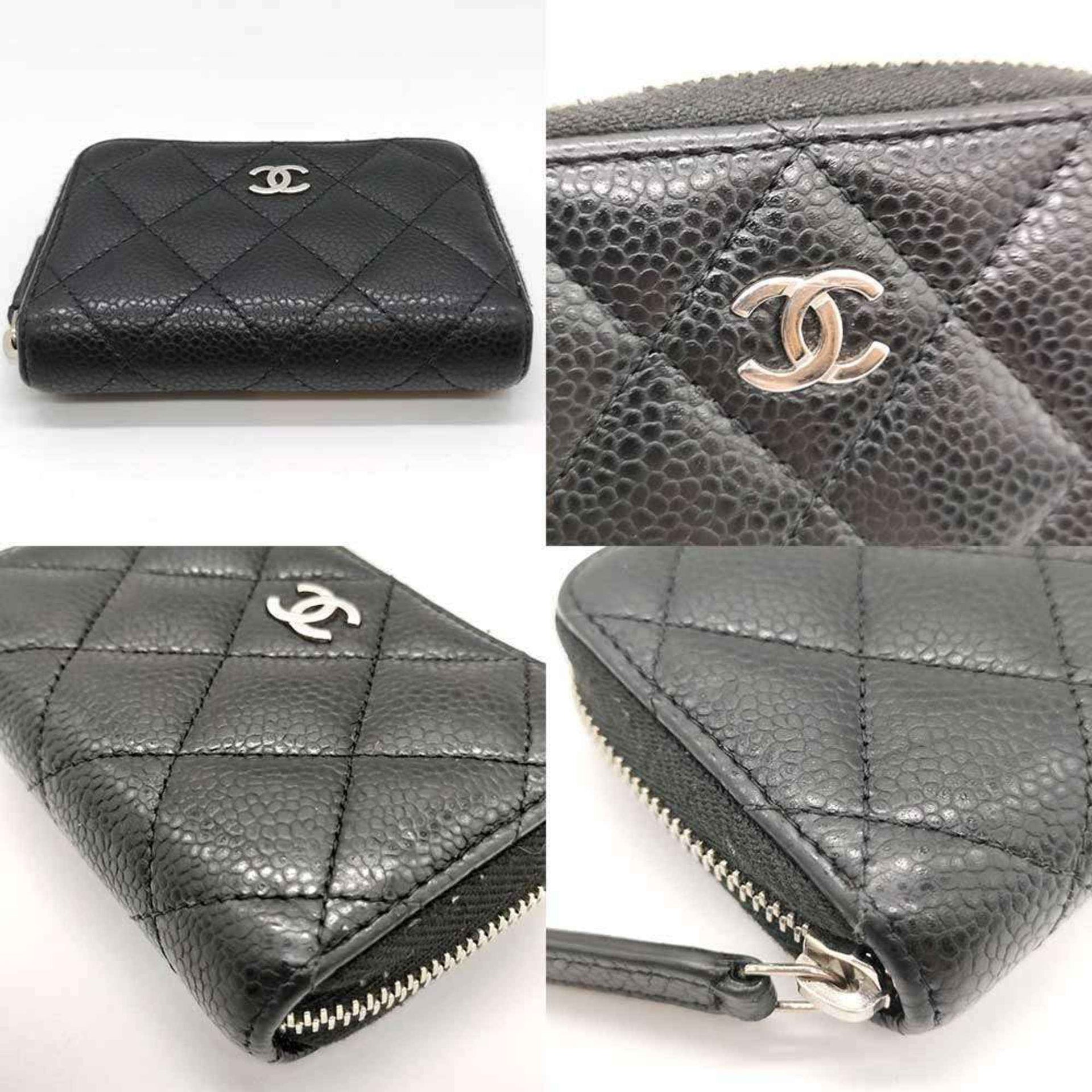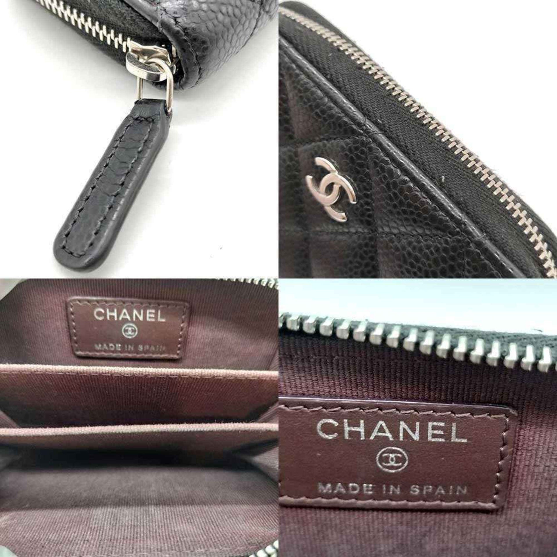 CHANEL Matelasse Timeless Classic Coin Case, Round, Black, Caviar Leather, Women\'s