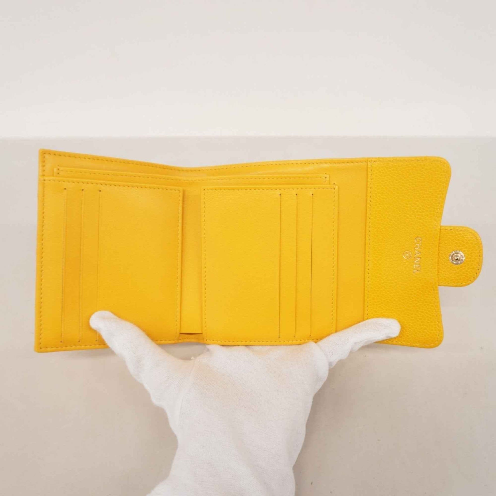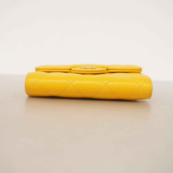 Chanel Matelasse Tri-fold Wallet in Caviar Leather, Yellow and Champagne, Women\'s