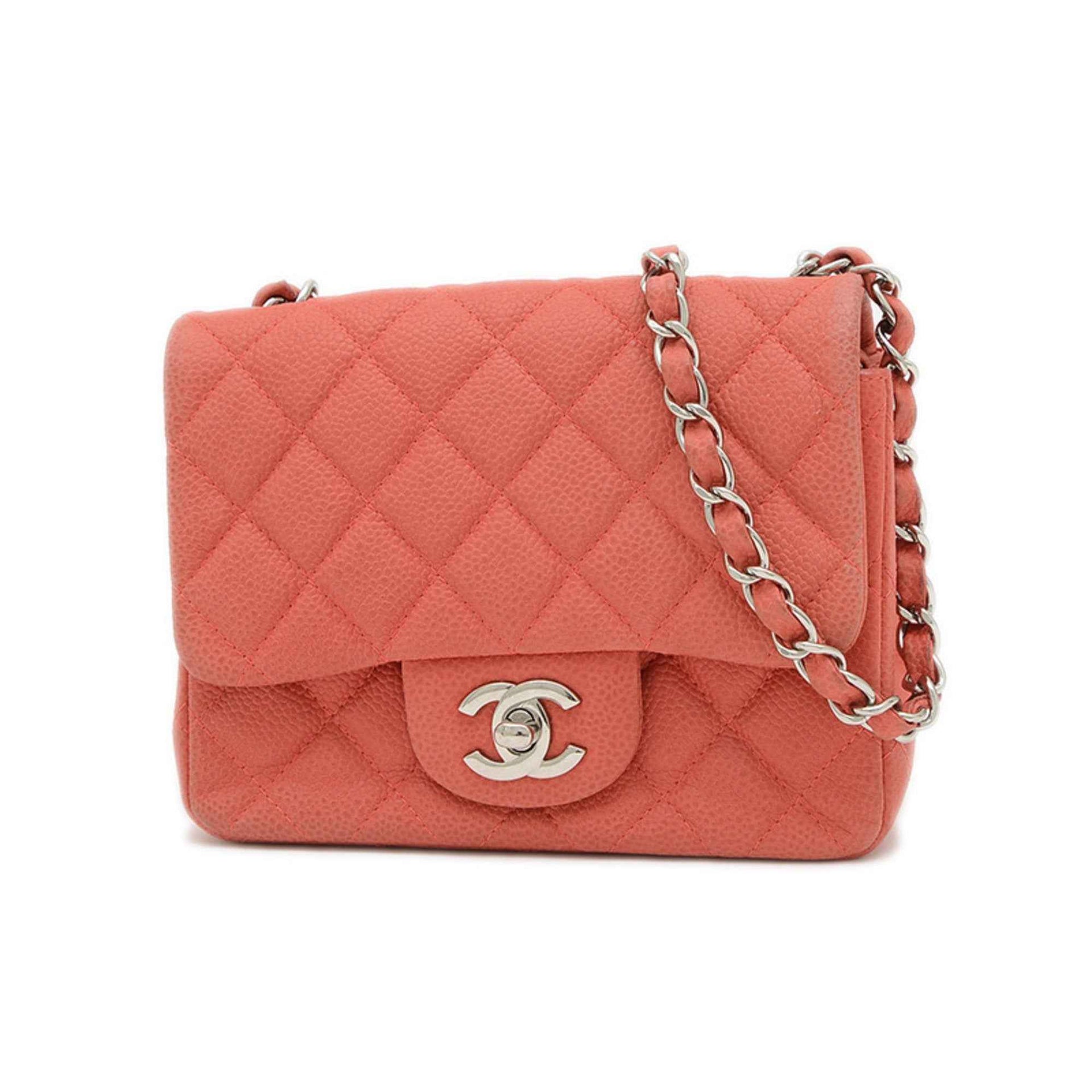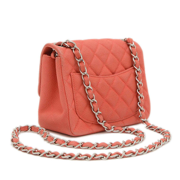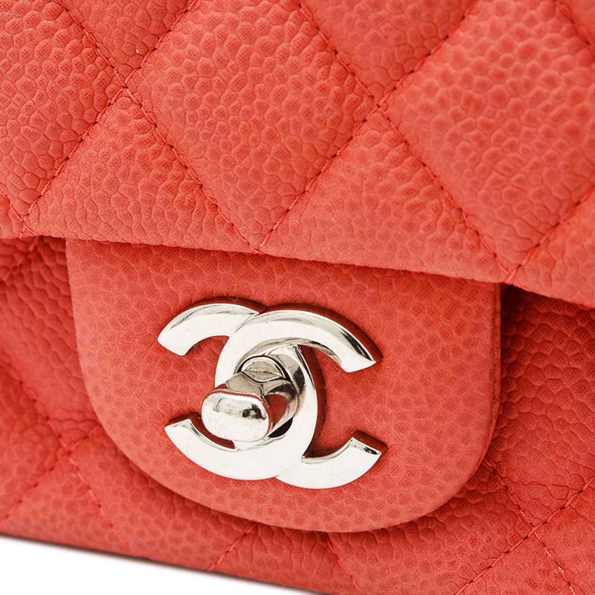 Chanel Mini Matelasse 18 Chain Shoulder Bag in Soft Caviar Red with Silver Hardware