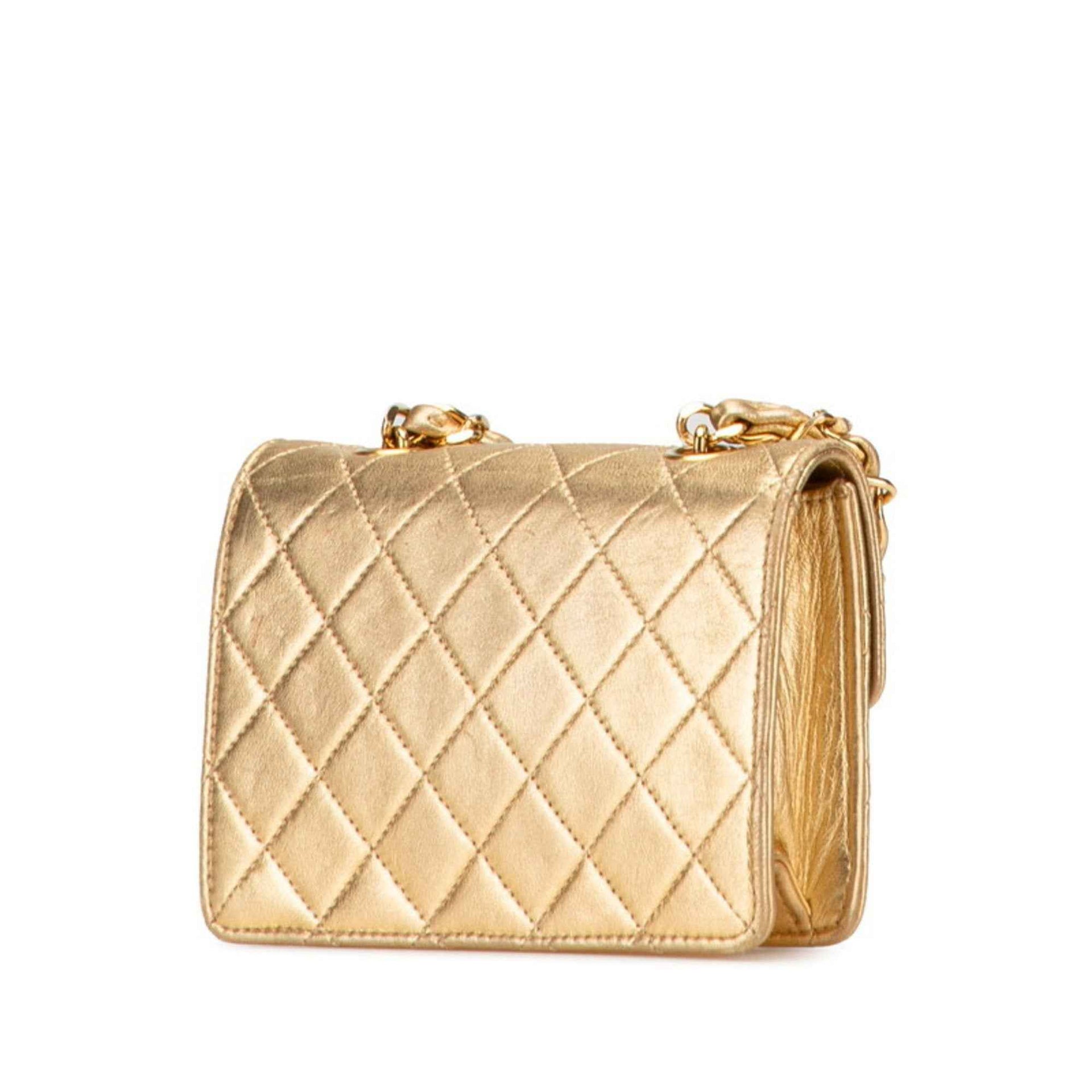 CHANEL Mini Matelasse Coco Mark Chain Shoulder Bag in Gold Lambskin for Women