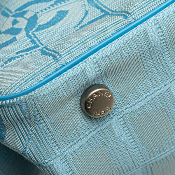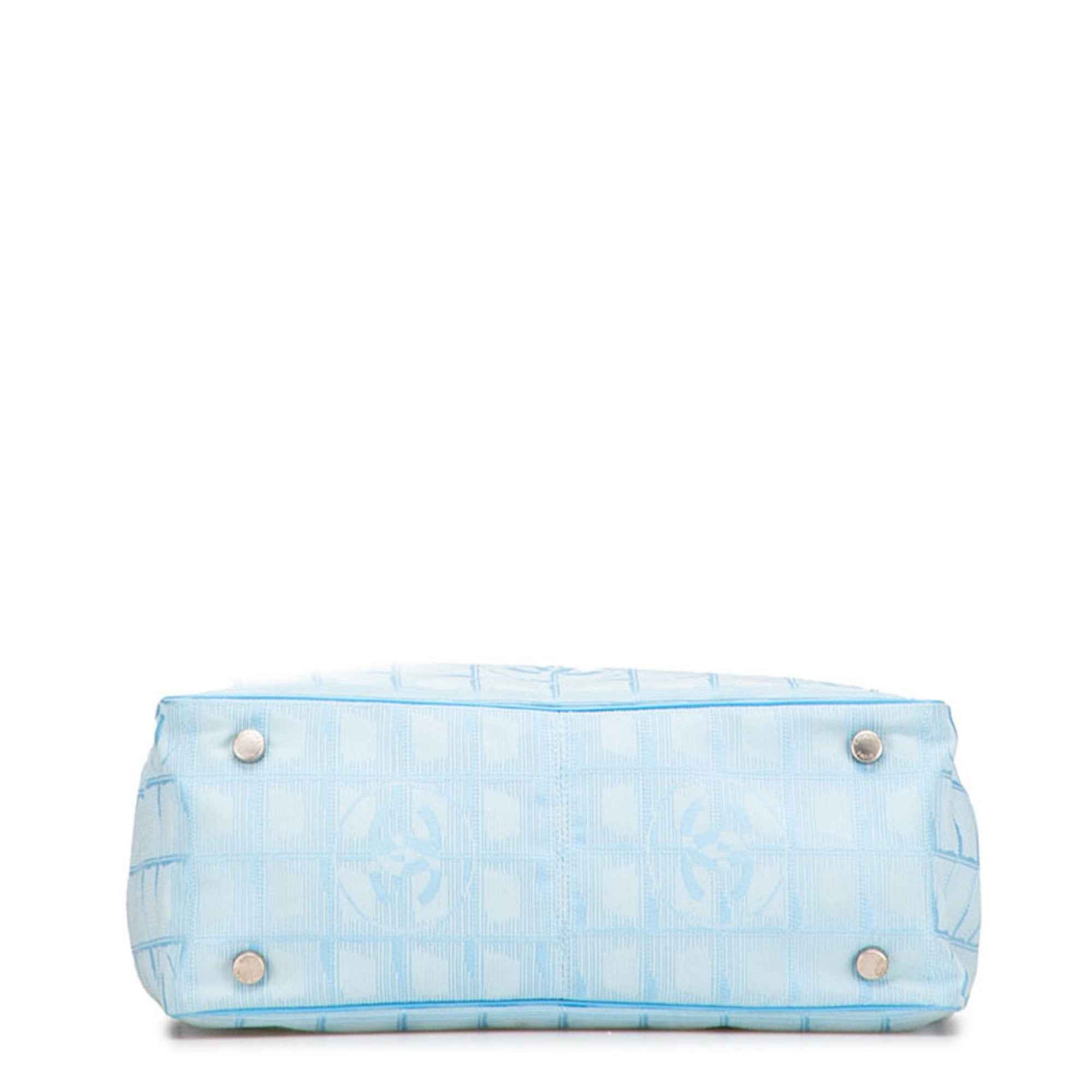 CHANEL New Travel Line Tote PM Bag Handbag Blue Nylon Leather Women\'s
