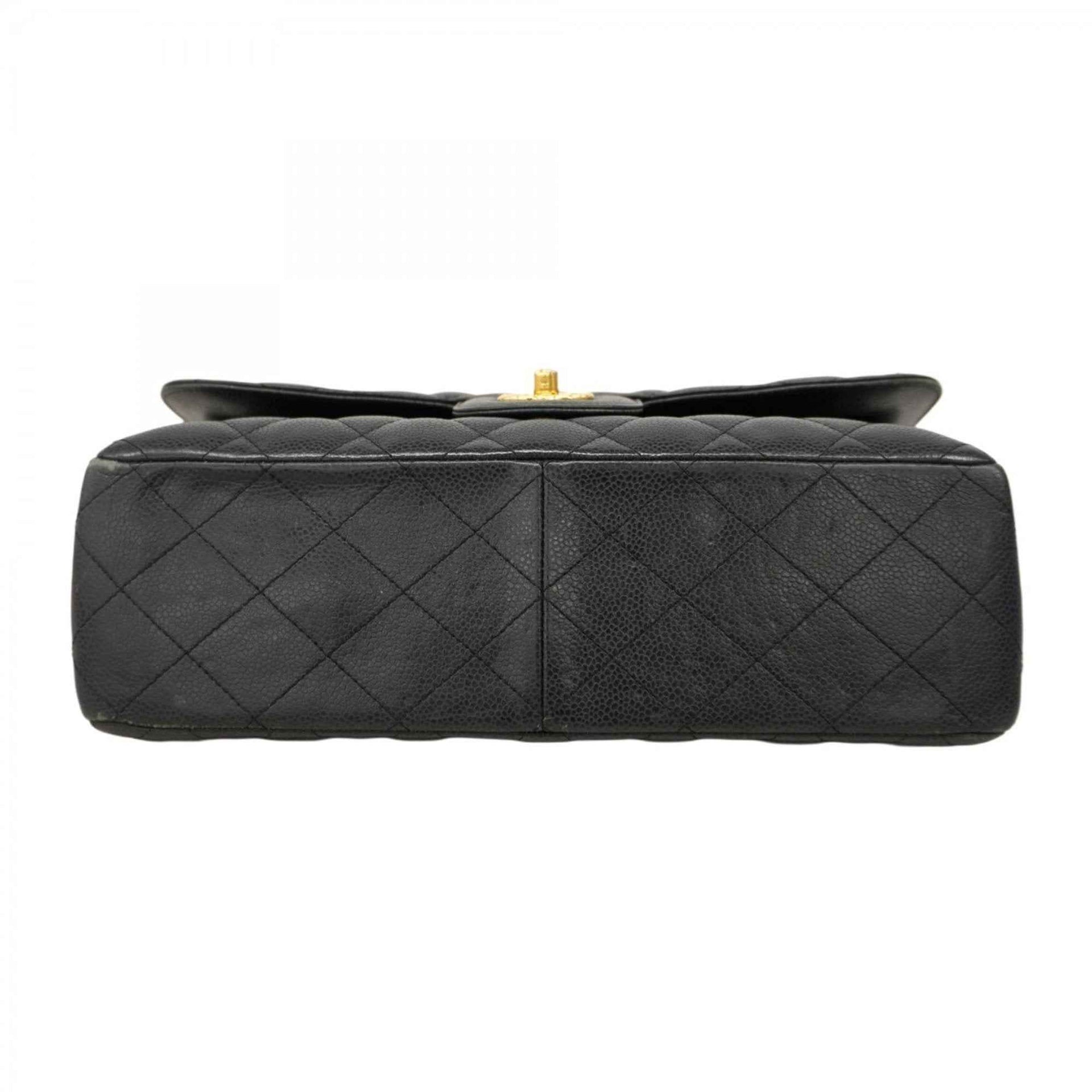 Chanel Shoulder Bag, Deka Matelasse, Double Flap, Chain, Caviar Skin, Black, Women\'s