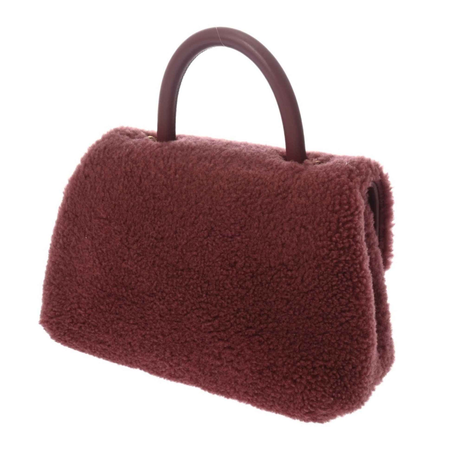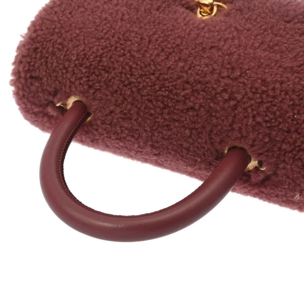 CHANEL Top Handle Flap Bag XS 2WAY Bordeaux A92990 Women\'s Shearling Handbag