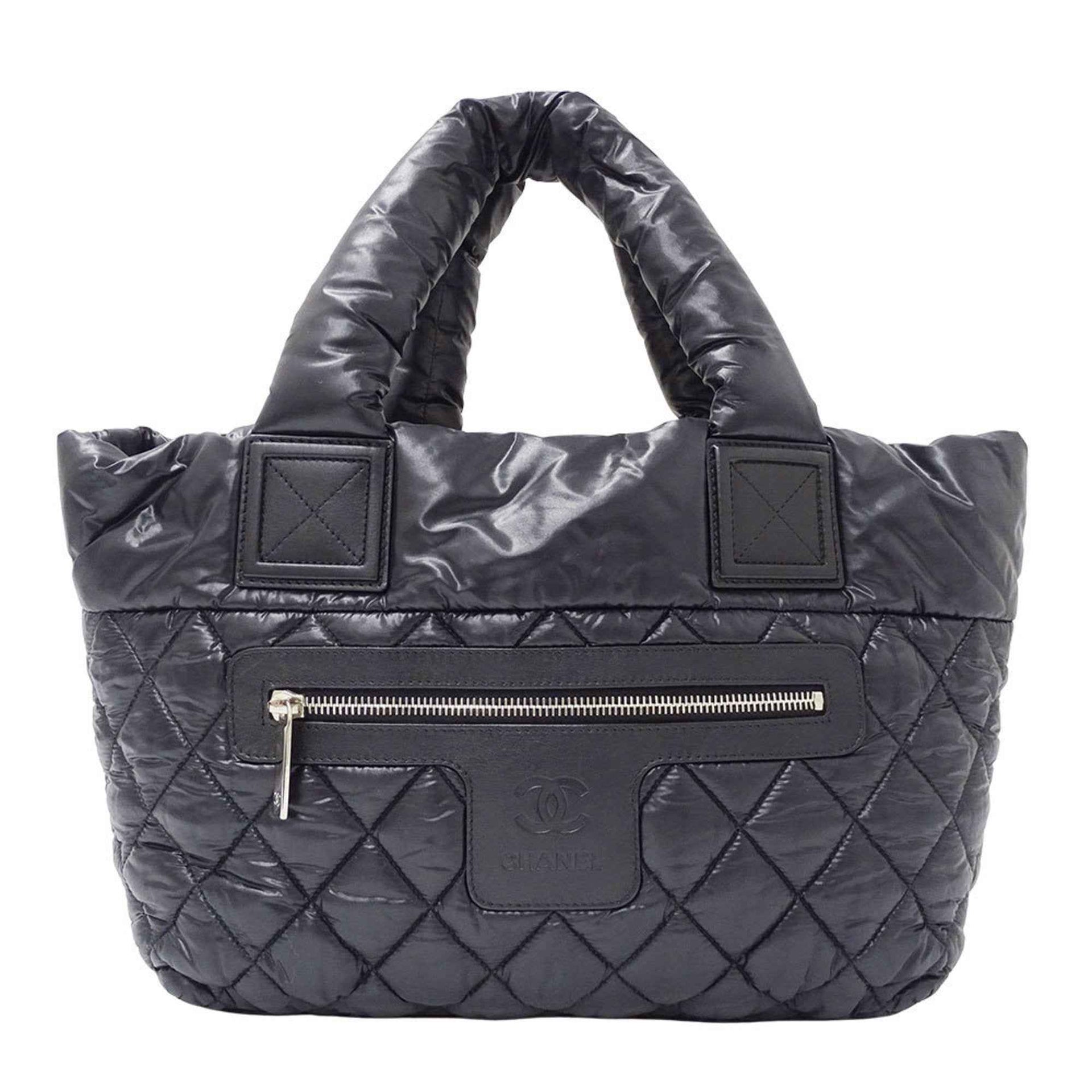 CHANEL Women\'s Coco Cocoon Tote Bag, Black Nylon with Silver Hardware, A48610, Quilted