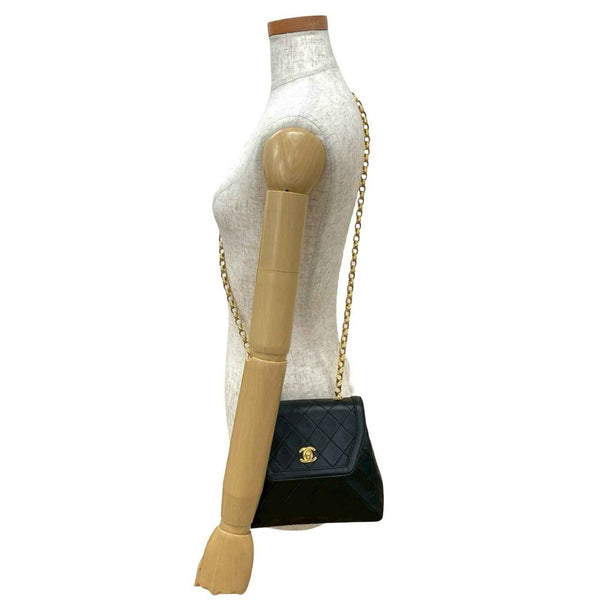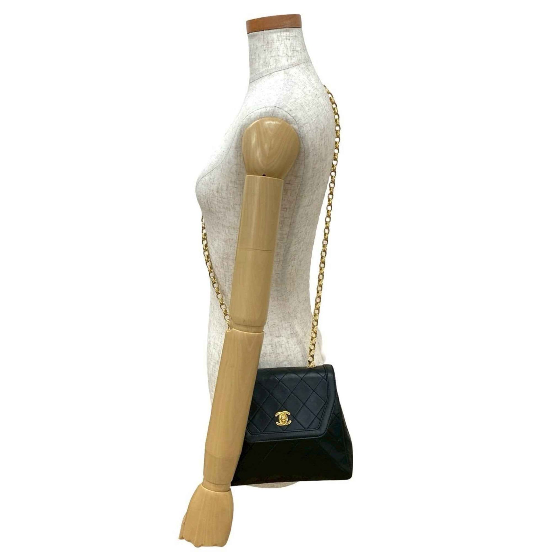 Seal No. 0 CHANEL Matelasse Coco Lambskin Leather Chain Shoulder Bag Pochette Black 27516