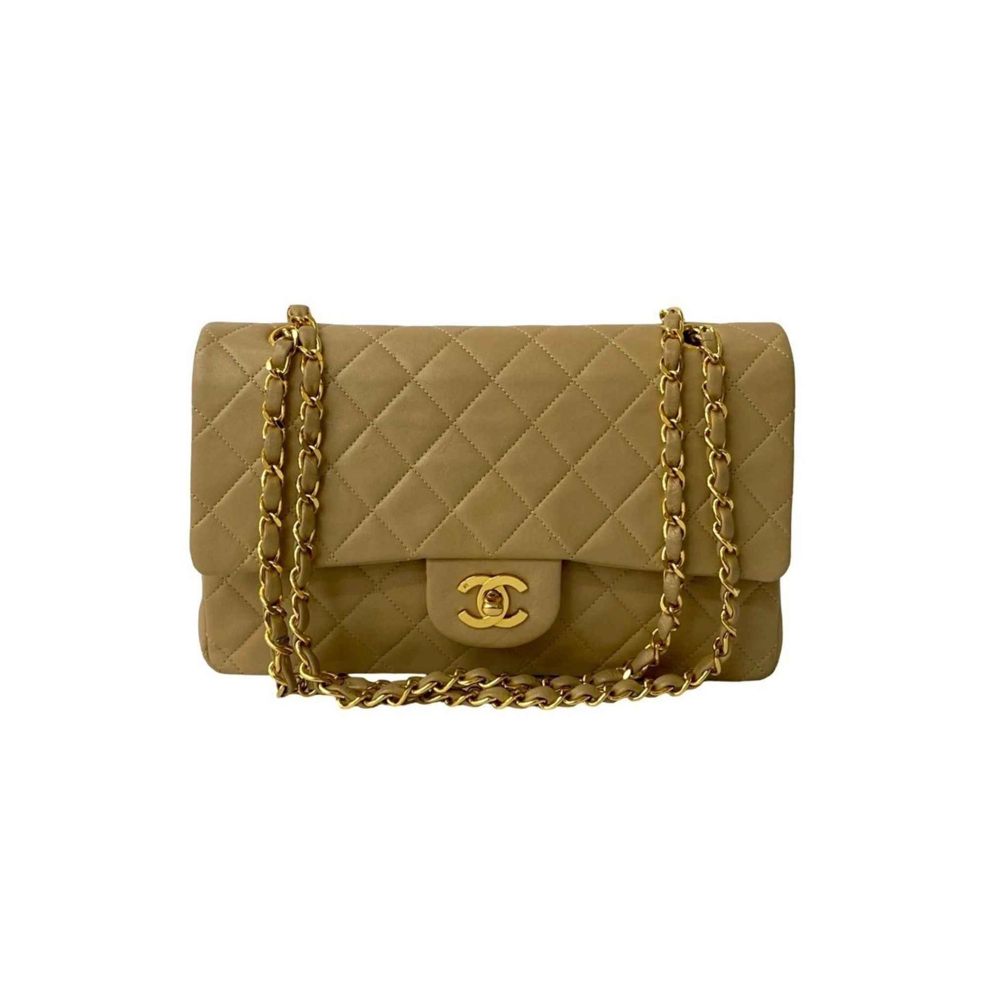 Seal No. 1 CHANEL Matelasse Coco Mark Lambskin Chain Shoulder Bag Pochette Beige c77-8