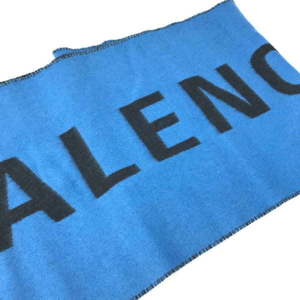 BALENCIAGA Two-tone Logo Scarf Wool Men\'s Blue