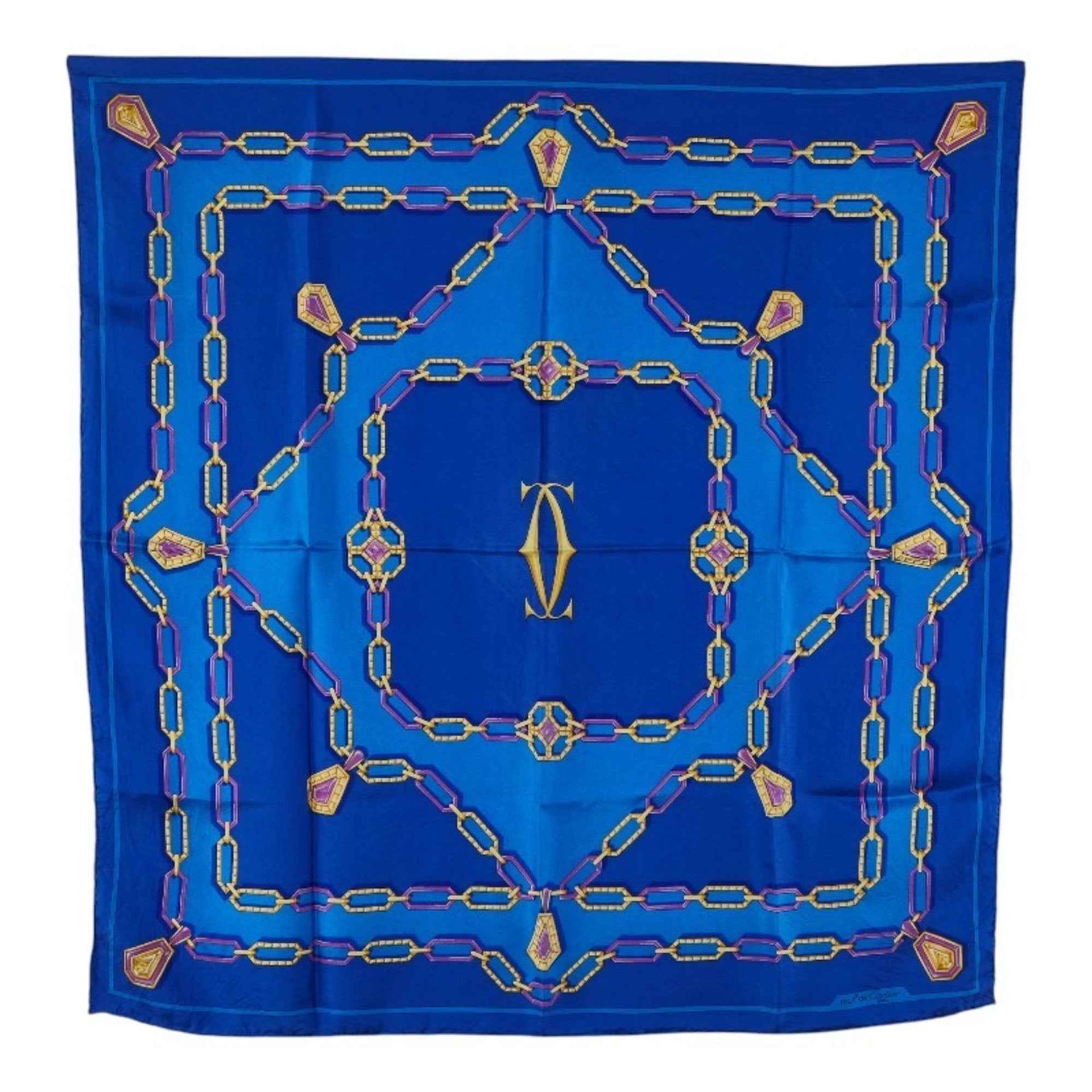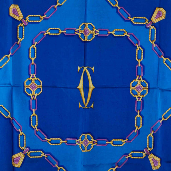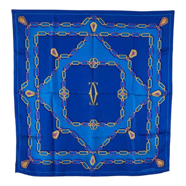 Cartier Jewelry Pattern Scarf, Blue Silk, Women\'s