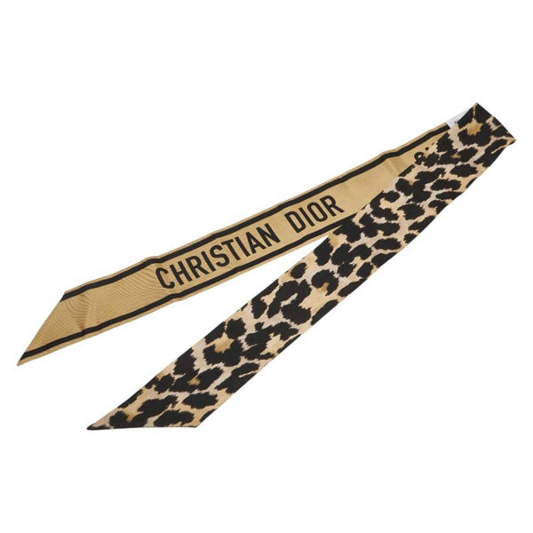 Christian Dior Dior Leopard Print Mitzah Scarf, Beige, Black, Silk, Women\'s,