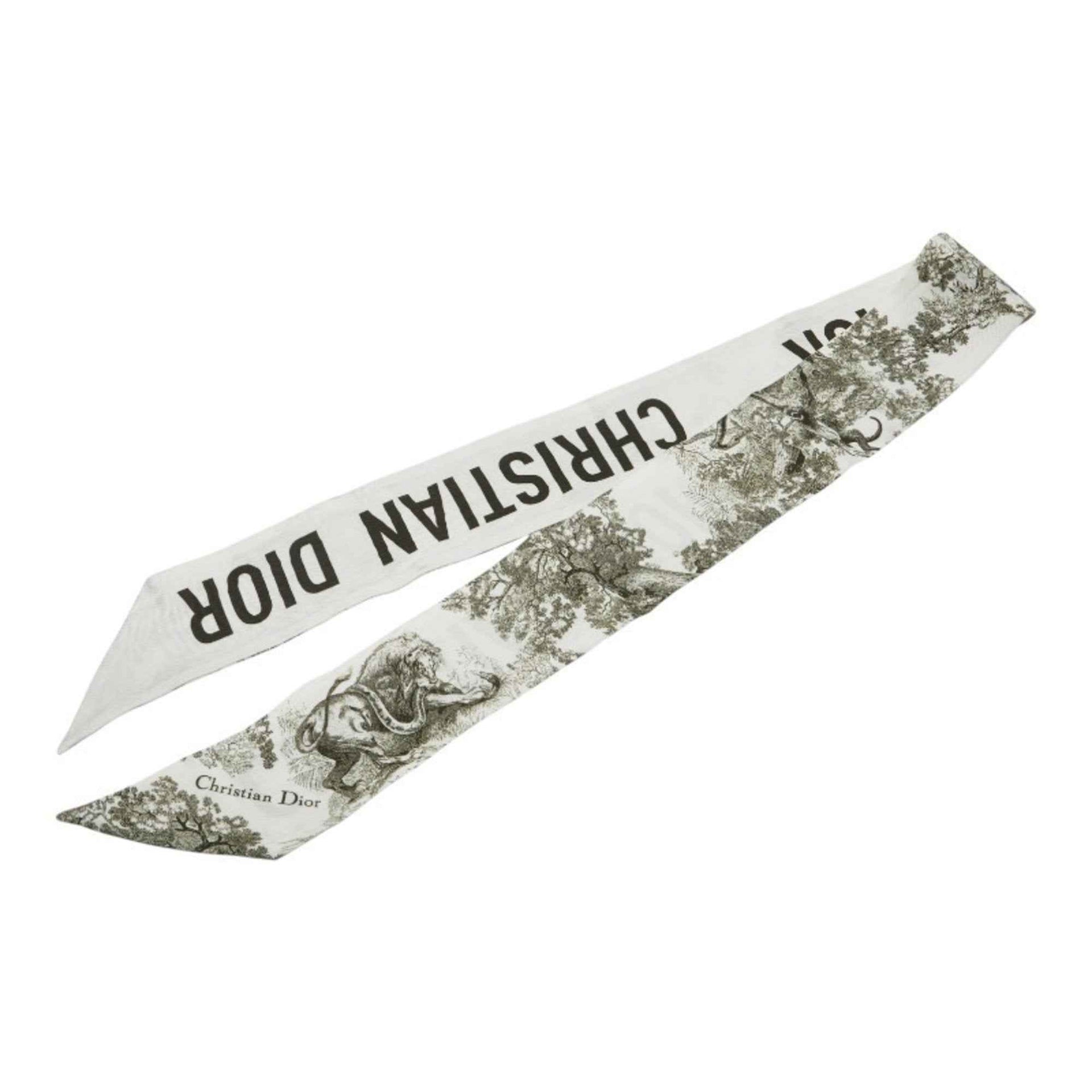 Christian Dior Dior Mitzah Toile de Jouy Scarf/Muffler in White Khaki Silk for Women