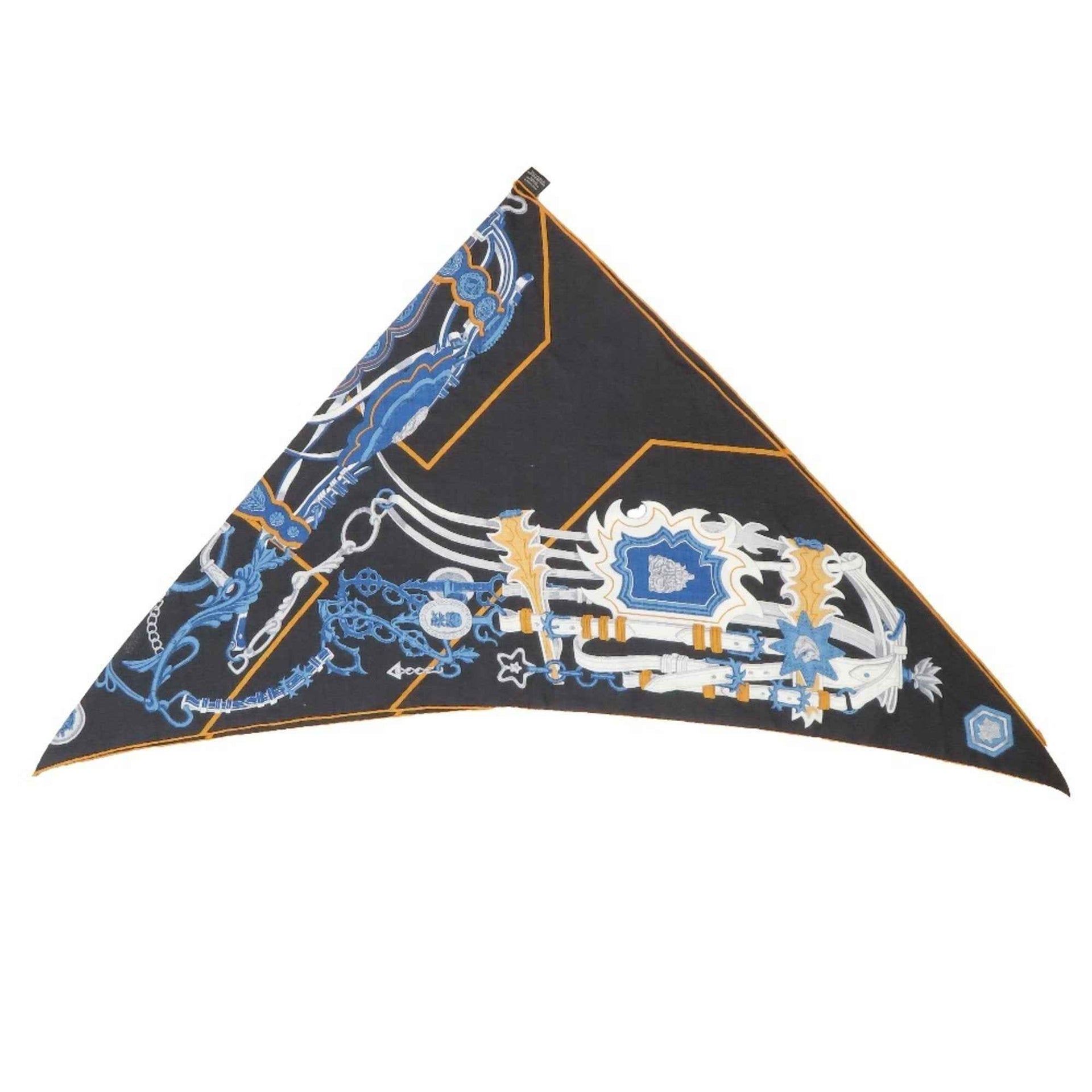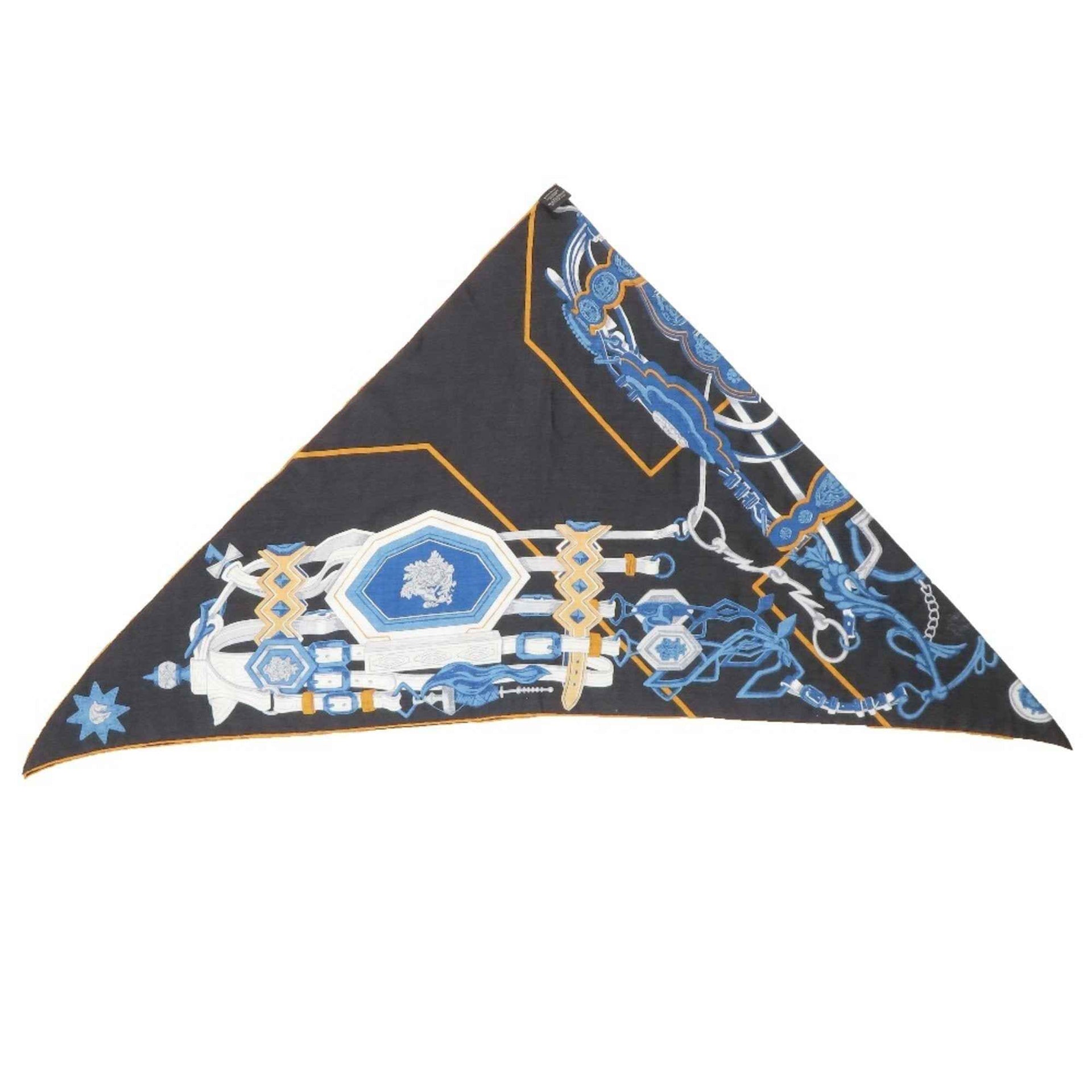 HERMES Brides & D\'estin Triangle Geant Scarf, Cashmere and Silk Blend, Black Blue, Women\'s
