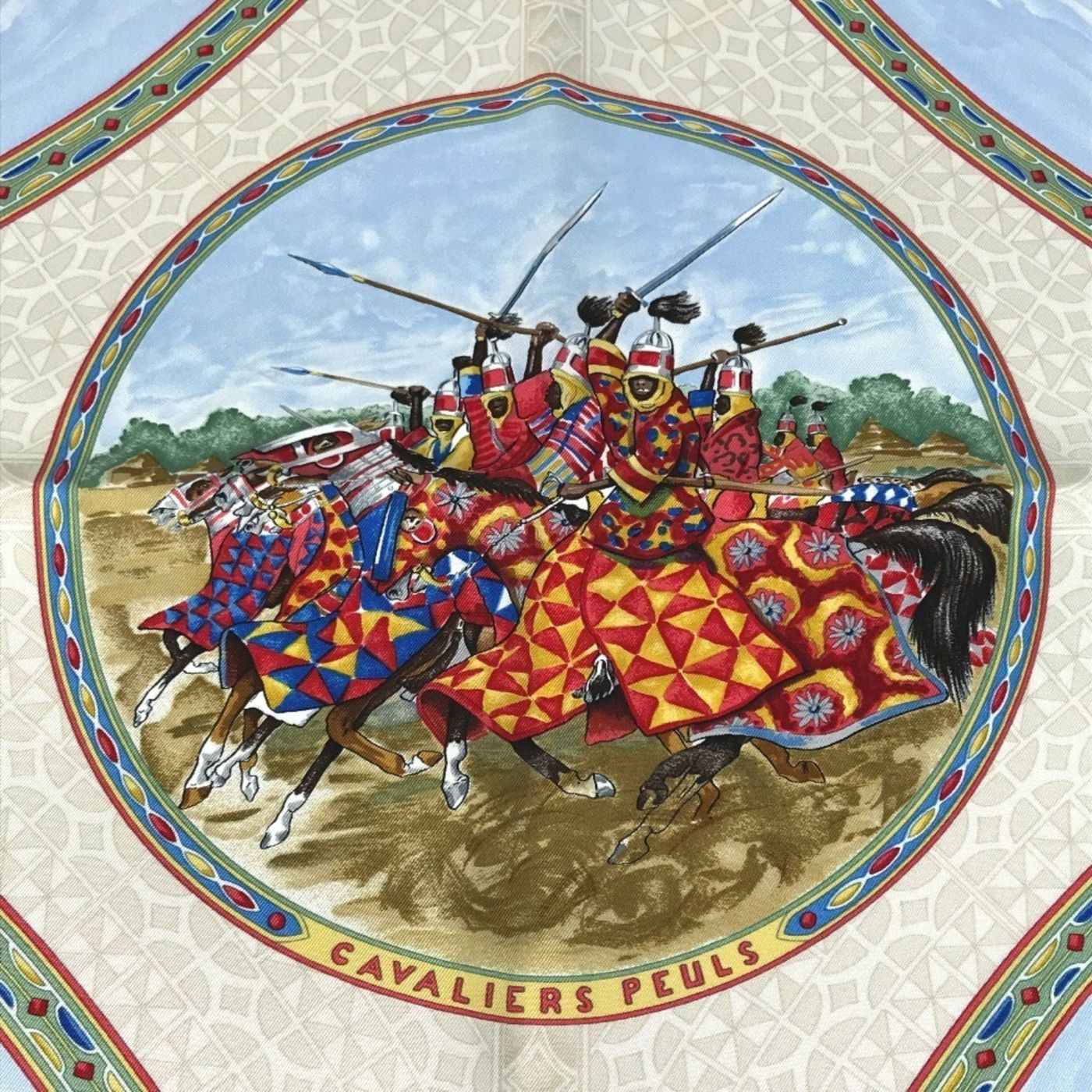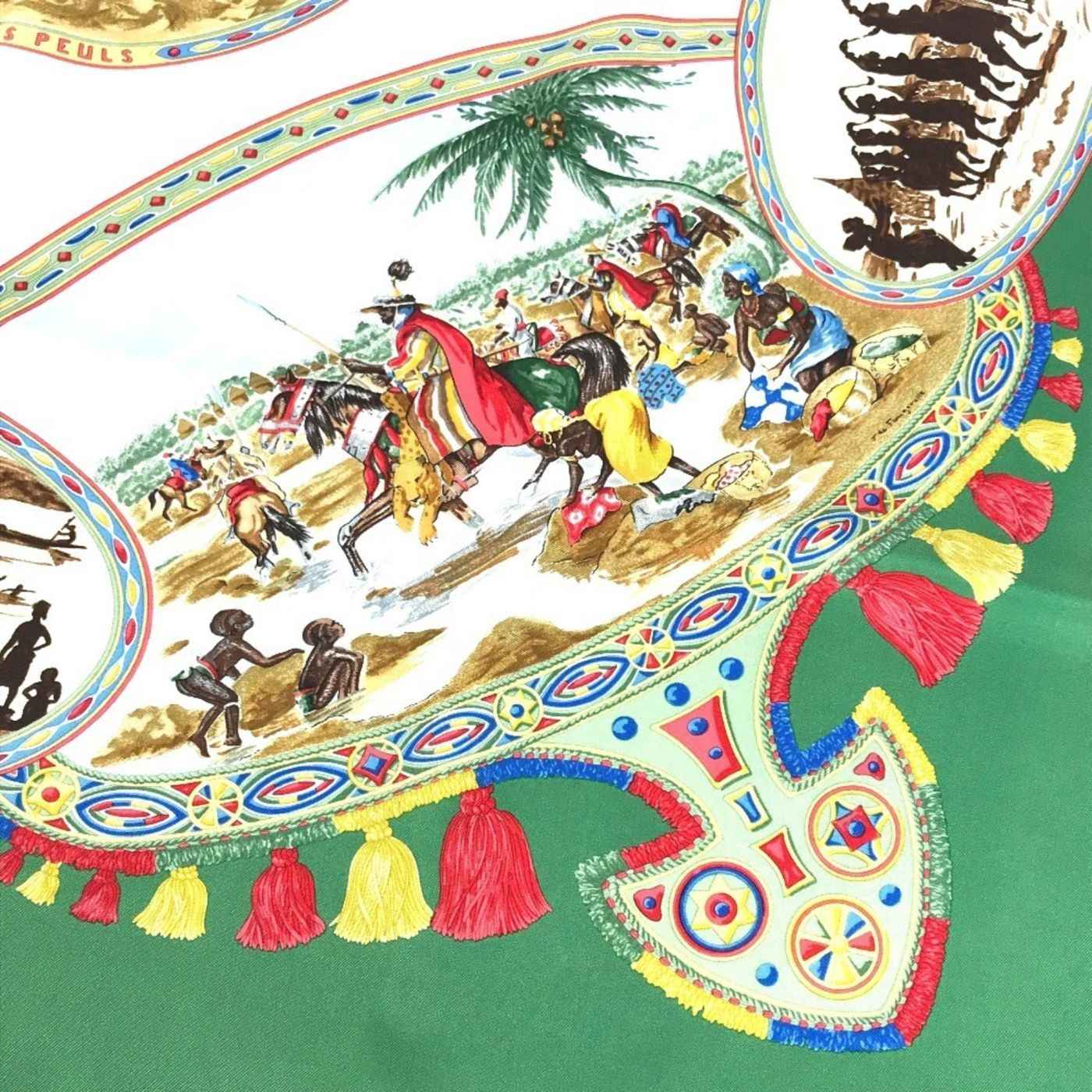 HERMES Carré 90, CAVALIERS PEULS, Women\'s Silk Scarf, Green