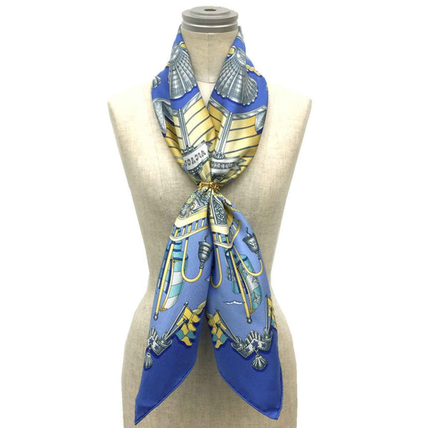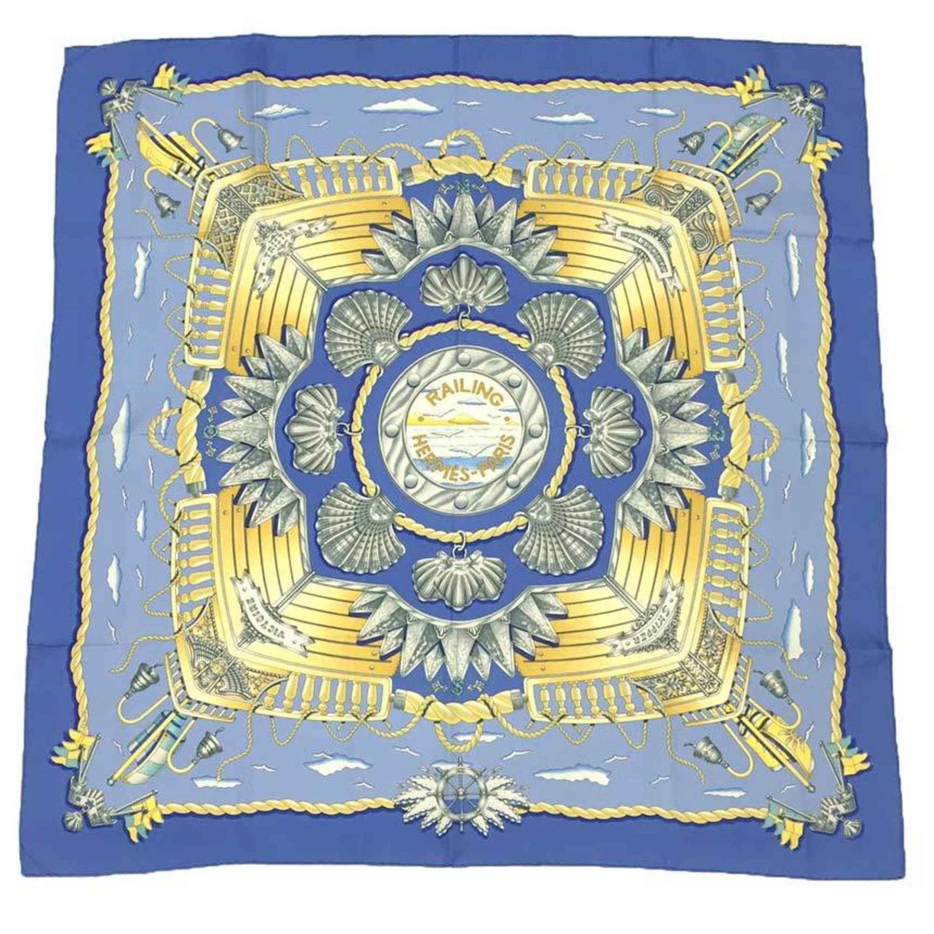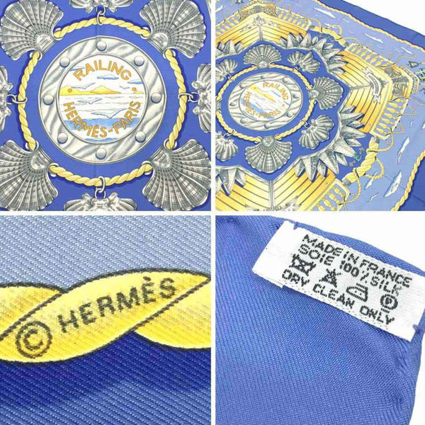 HERMES Carré 90 RAILING Scarf, Ship\'s Railing, Blue, 100% Silk