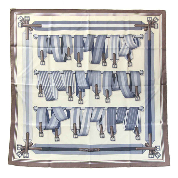 Hermes Carré 90 Scarf, Ivory/Greige, 100% Silk, Large Stole, Women\'s