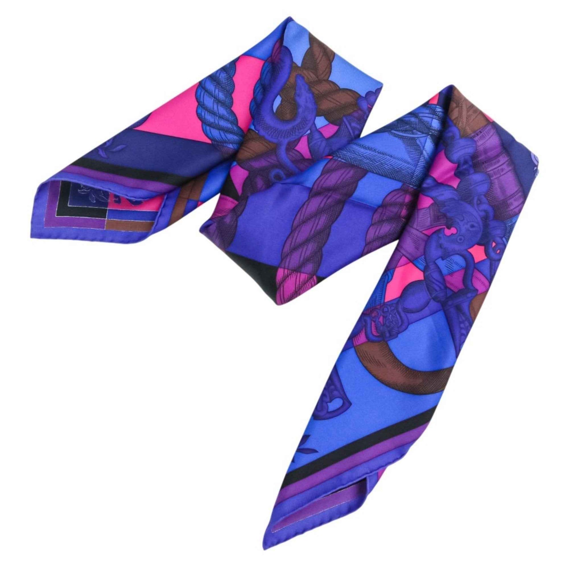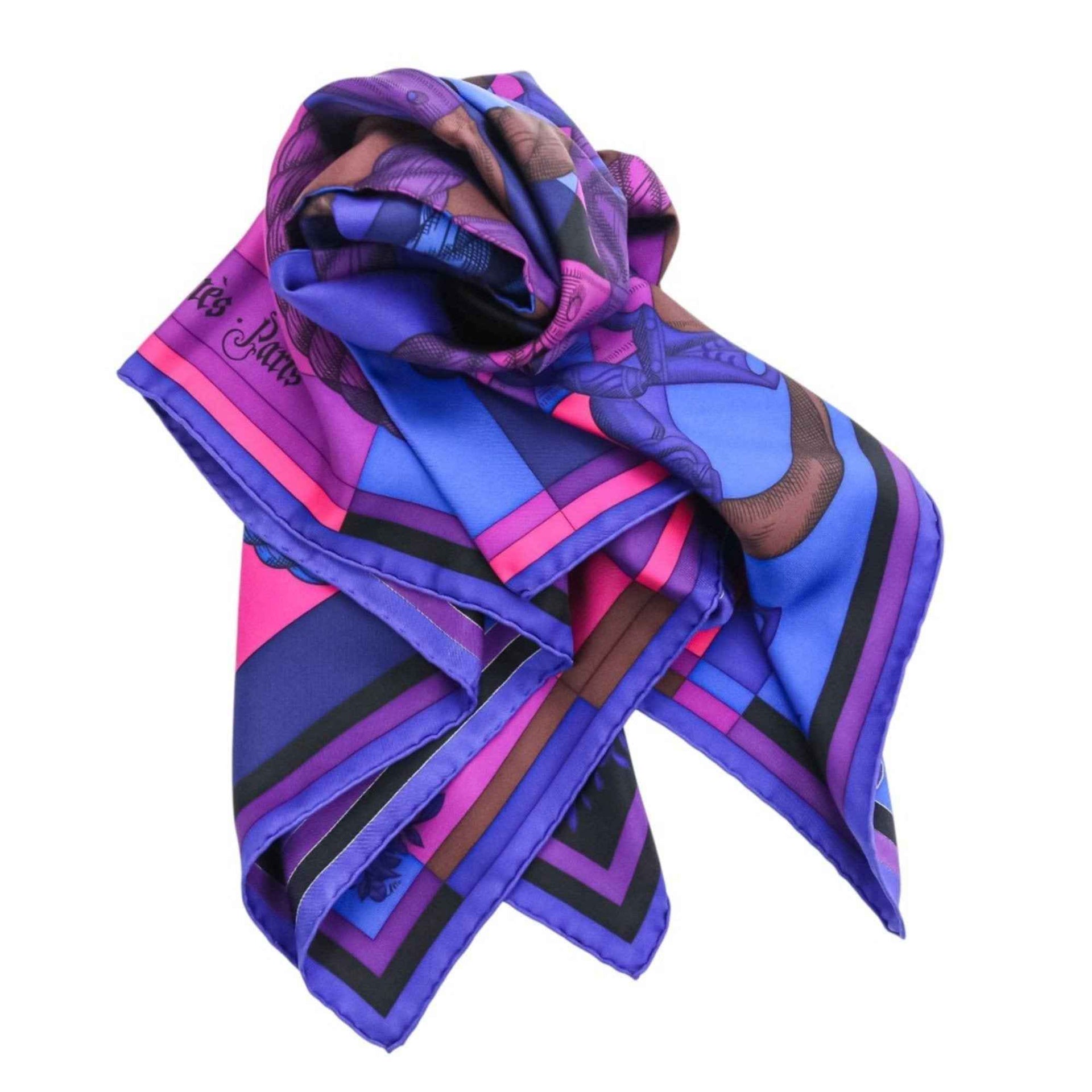 HERMES Della Cavalleria Carre 90 Silk Large Scarf/Muffler, Blue, Women\'s