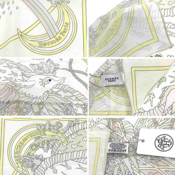 HERMES Handkerchief \"Le Sacre de I\'Hiver\" (The Festival of I\'Hiver) H241039G 02 Bandana Scarf Muffler Cotton Carré