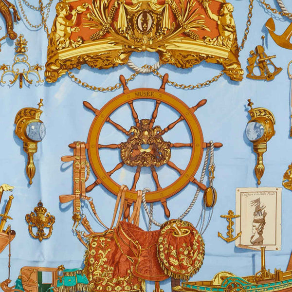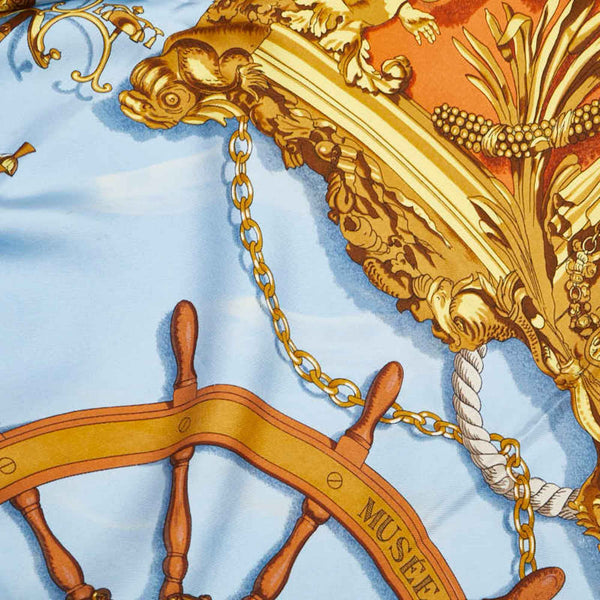 Hermes Hermès Carré 90 \"BATEAU A VAPEUR DE JOUFFROY DABBANS 1784\" Steamship Scarf, Blue, Brown, Multicolor, Silk, Women\'s