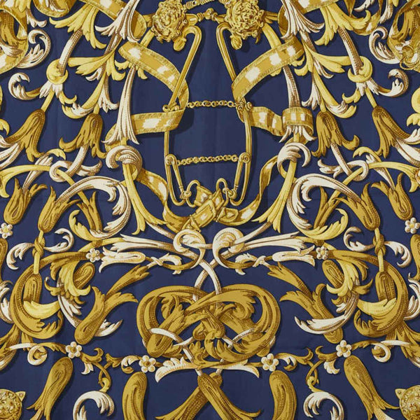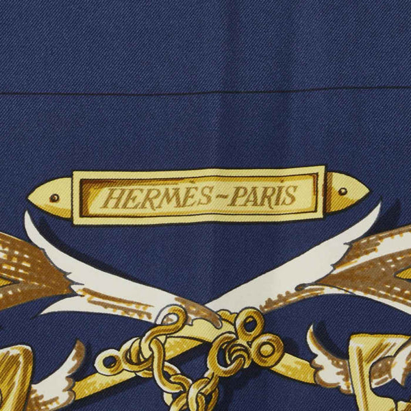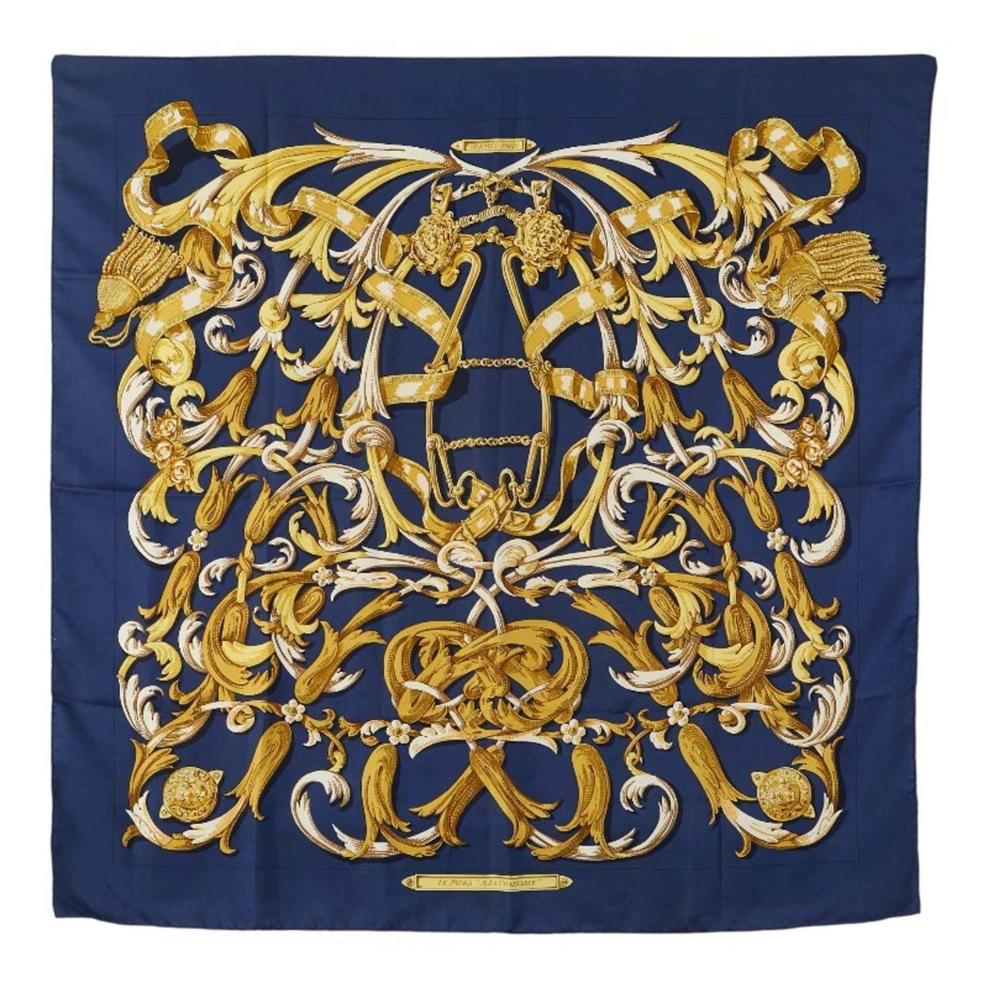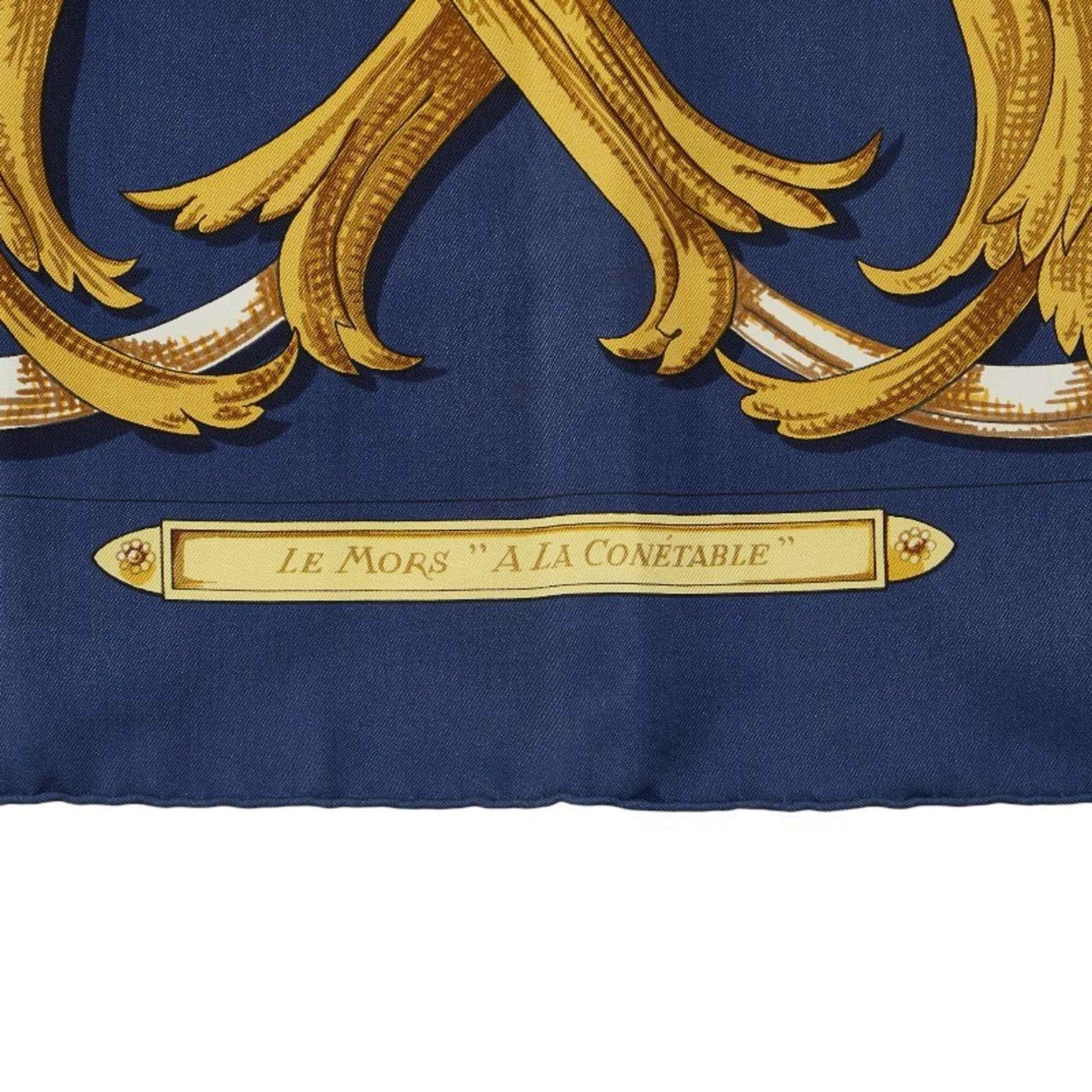Hermes Hermès Carré 90 \"LE MORS A LA CONETABLE\" Scarf, Blue and Gold Silk, Women\'s